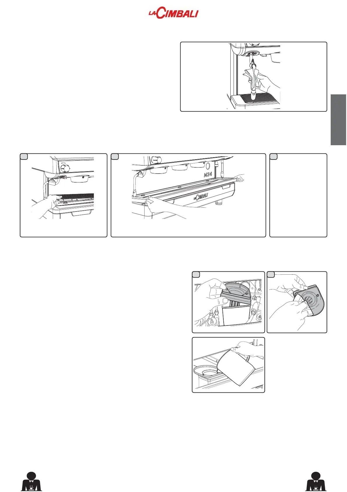 STEAM AND HOT WATER DISPENSING PIPES - This operation must be made at the end of each working day