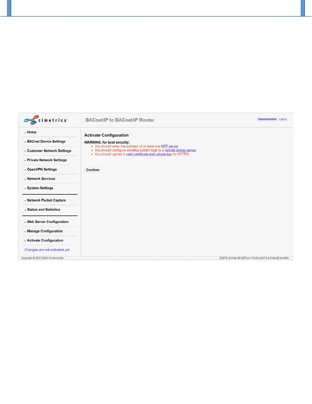 not detect any configuration errors, clicking on the “Confirm” button will initiate a reboot of the device after