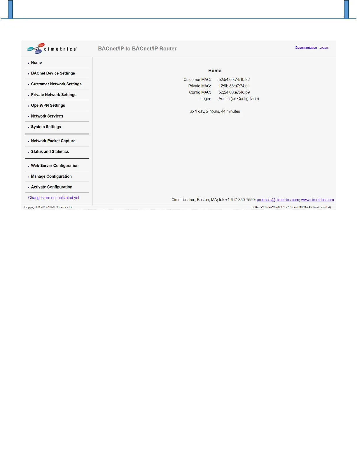 After you finish making changes to the B3075’s configuration, select “Activate Configuration” to store your