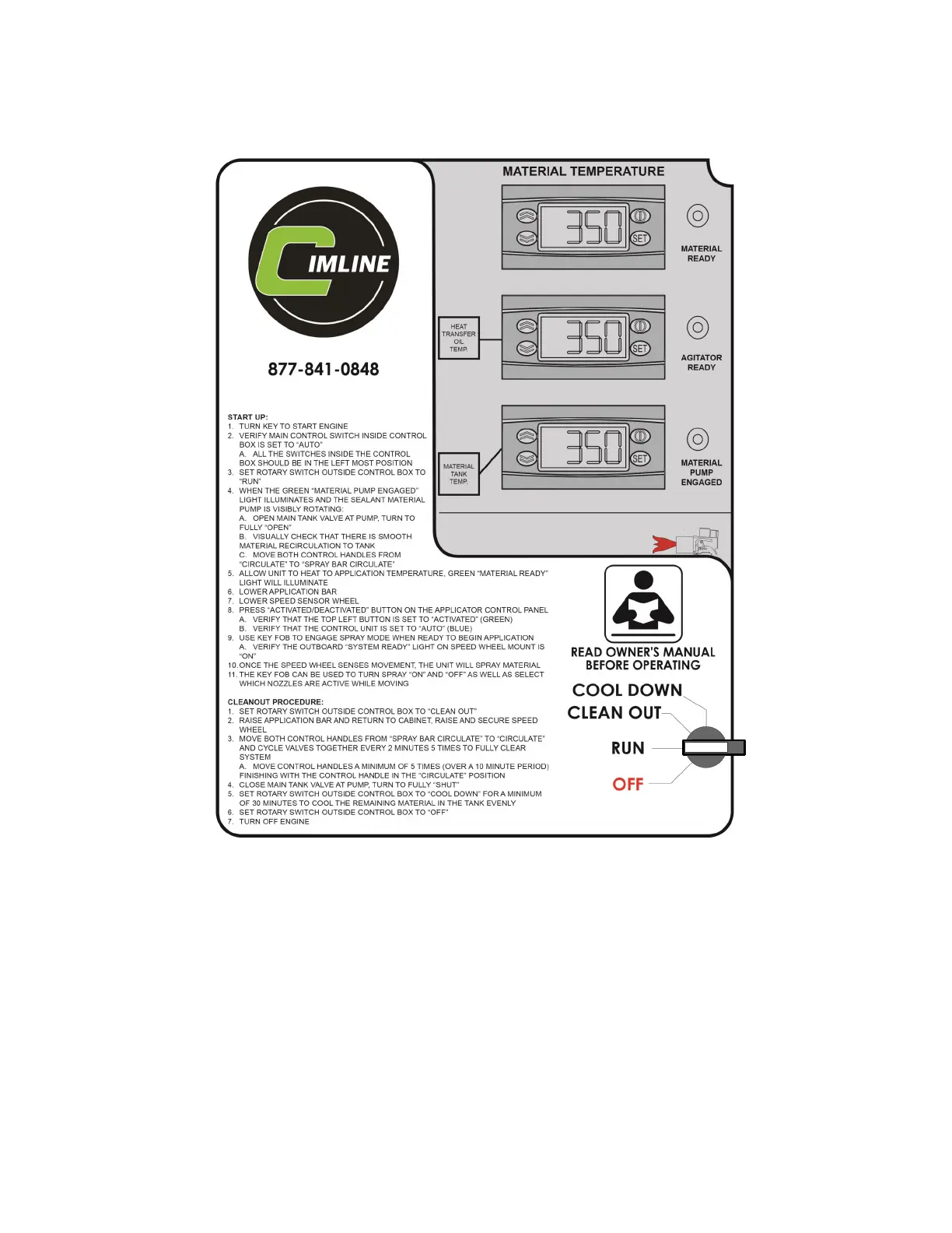 COOL DOWN: - Shuts down the burner and sealant material pump and turns the agitator only.