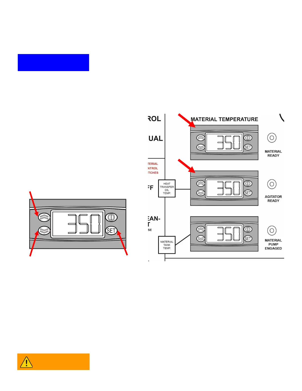 and apply to the heat transfer oil temperature controller (B). Run the melter applicator machine maintaining