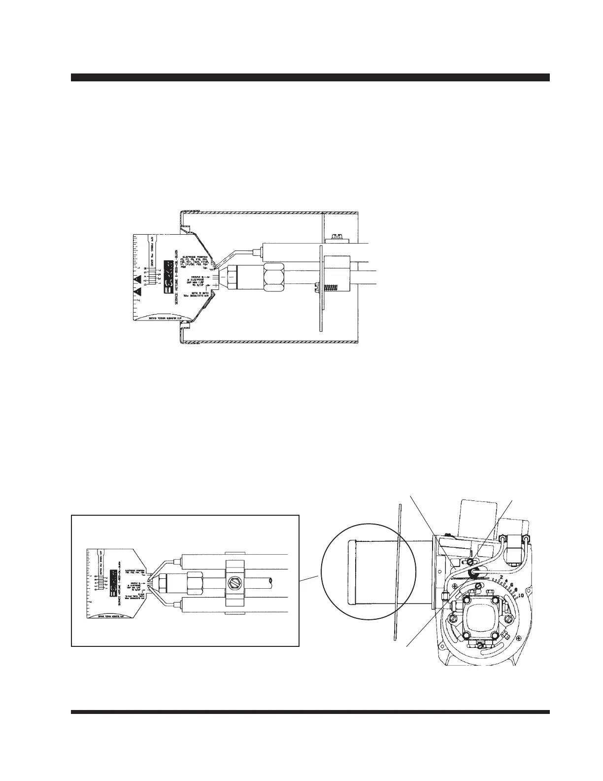 Insert gauge as shown below. The electrode tip should be in line with the intersection of