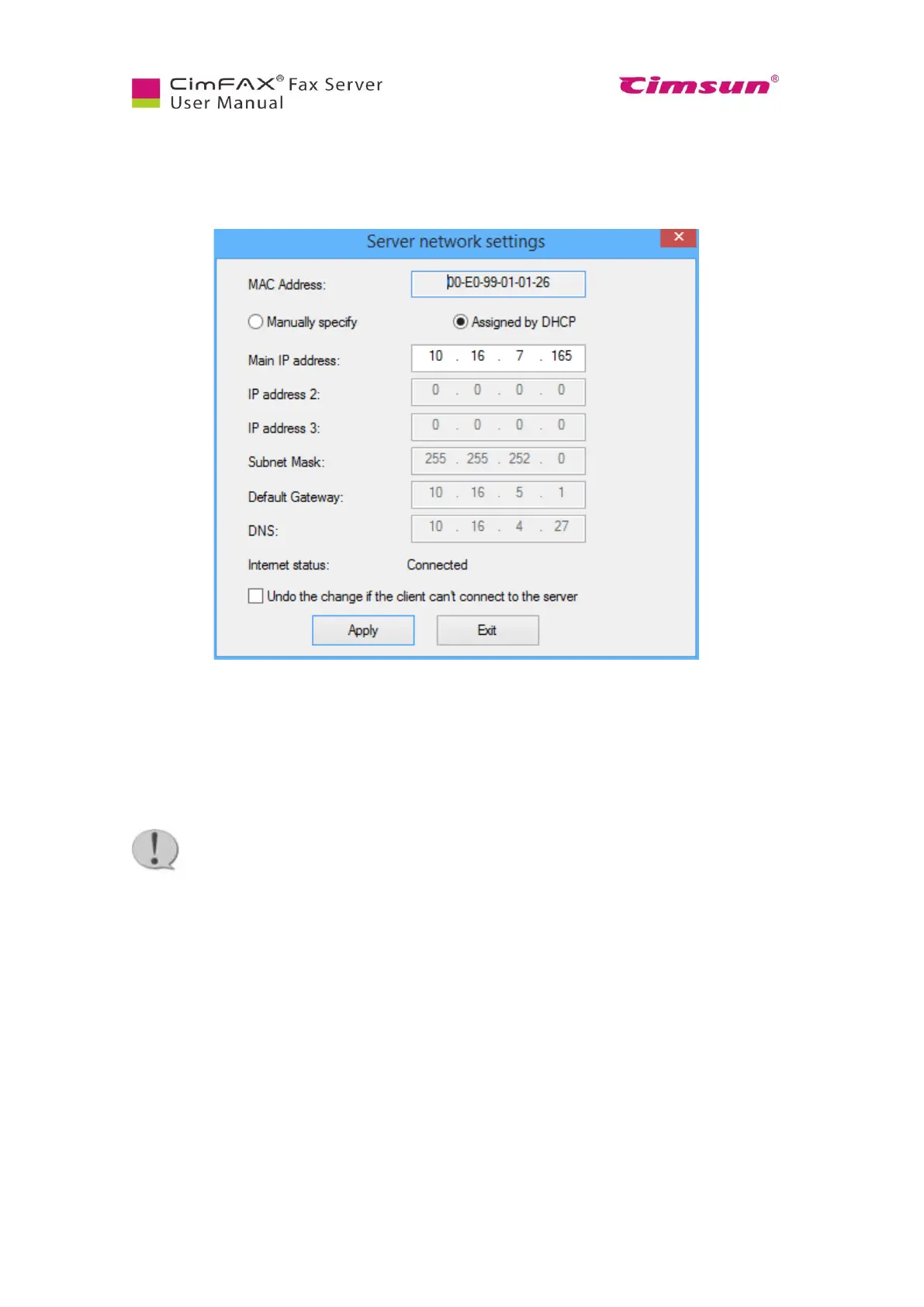 ● If you check on the option “Undo the change if the client can’t connect to the Server”, the settings