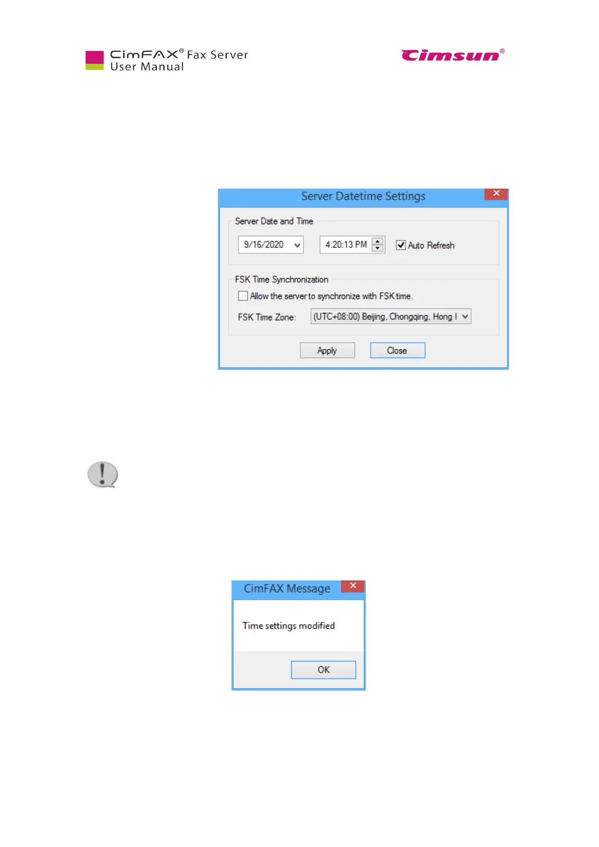 ● “Allow the server to synchronize with FSK time”: server date and time synchronize with FSK