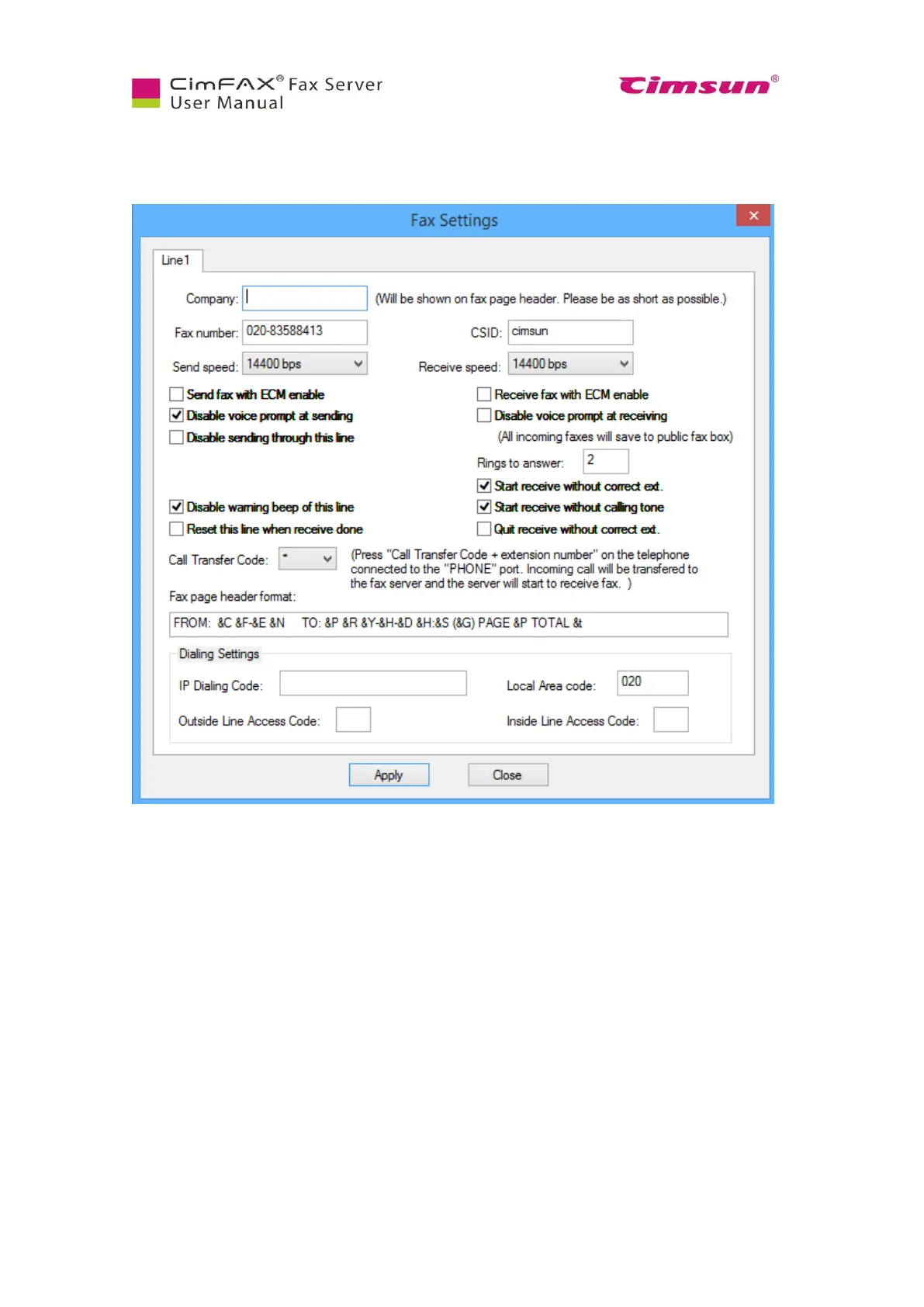● Type the number of the telephone connected with your fax server in the field “Fax number”. Fax