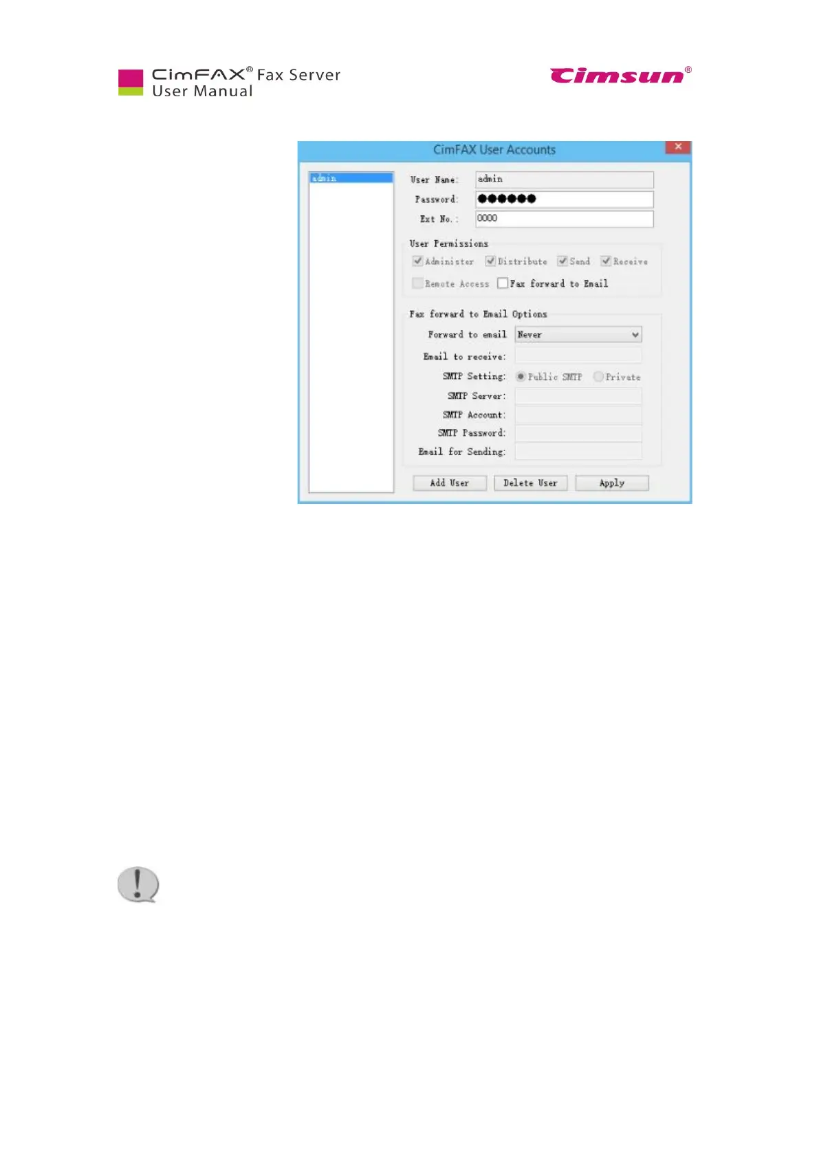 the fax server. User name
