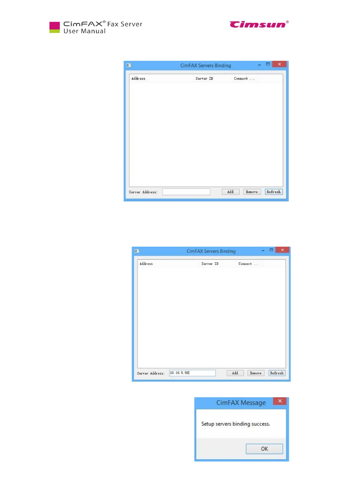 A window will show “Servers binding success”. Click “OK”