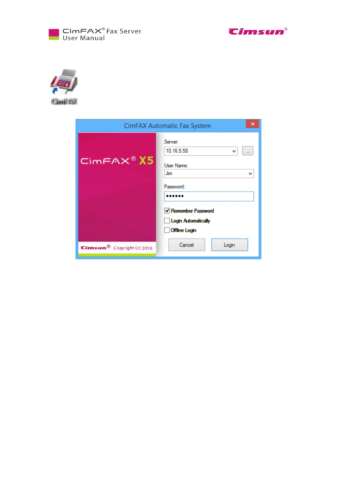 operating system is initiated. If not, please click “CimFAX” icon on desktop or click
