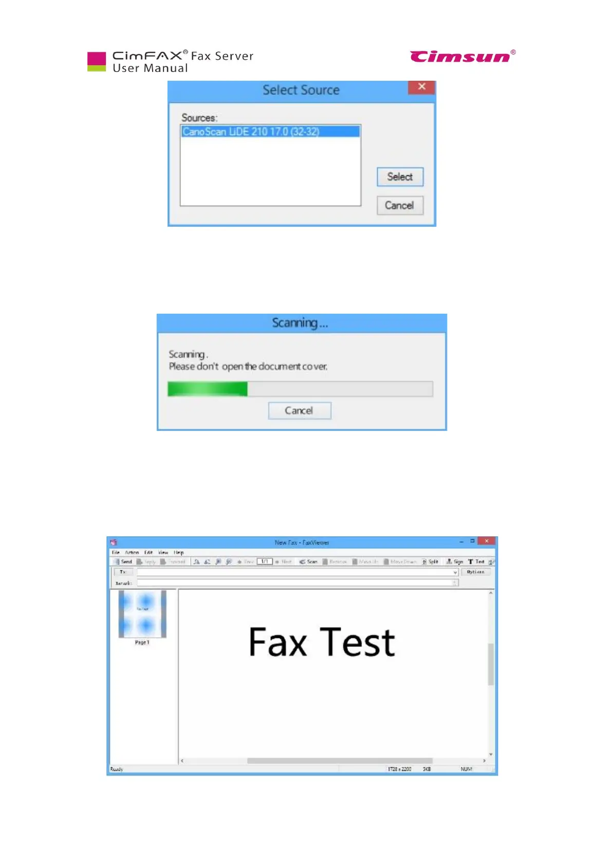 warming up. When scanning is done, the file will be displayed in the Fax viewer.
