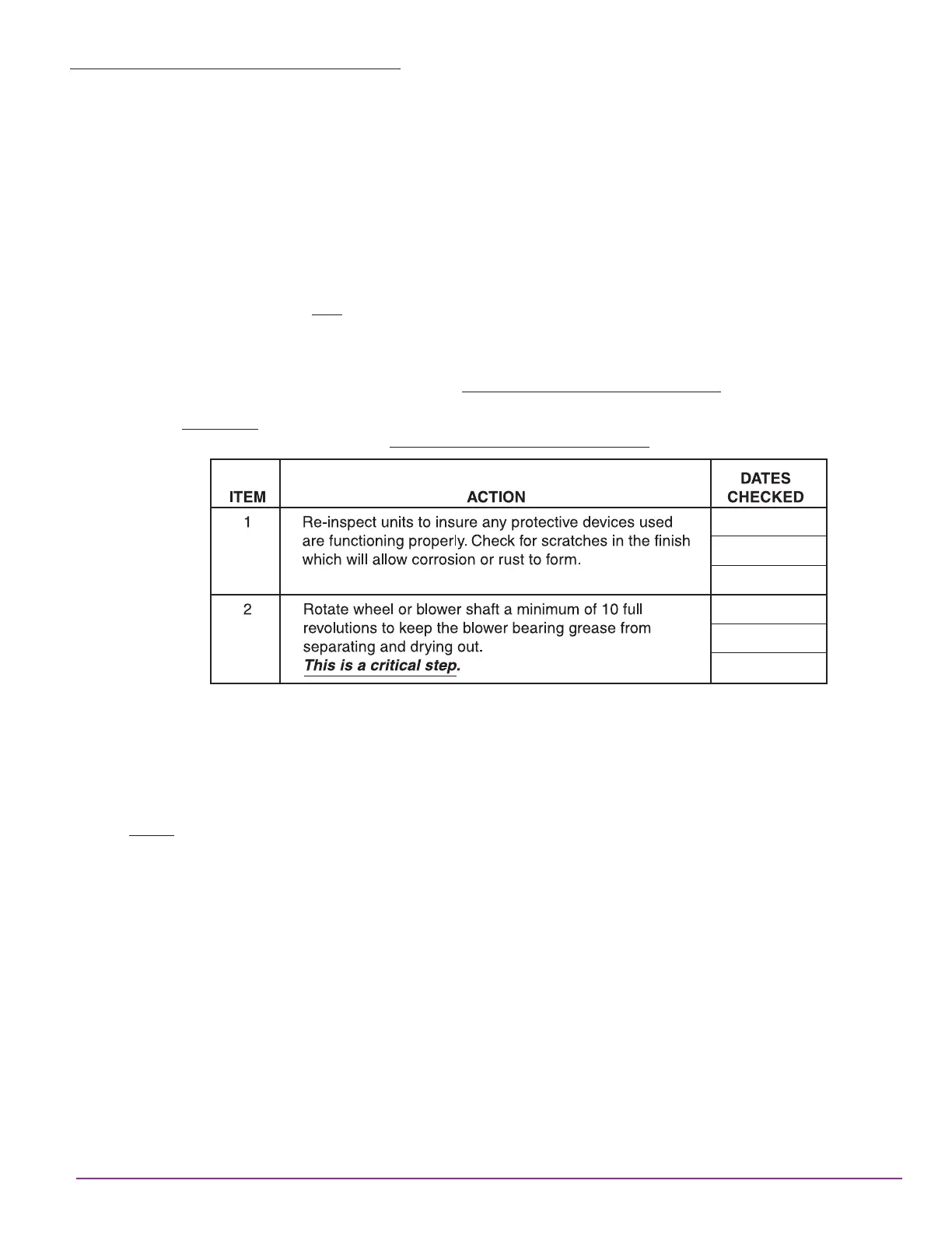 tained for each blower. See example below. Each item must be checked monthly.