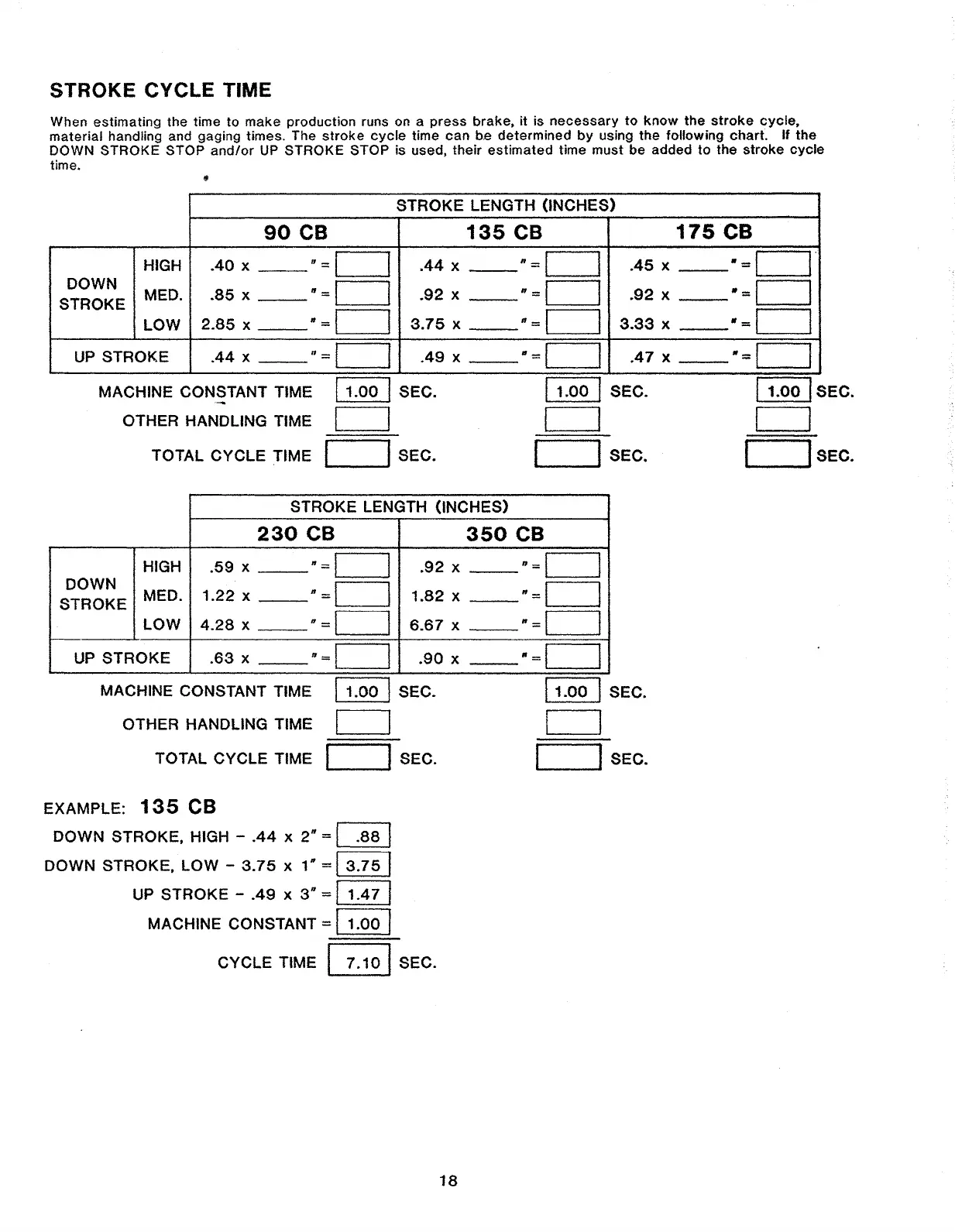 Cincinnati 230 CB - Stroke Cycle Time Calculation