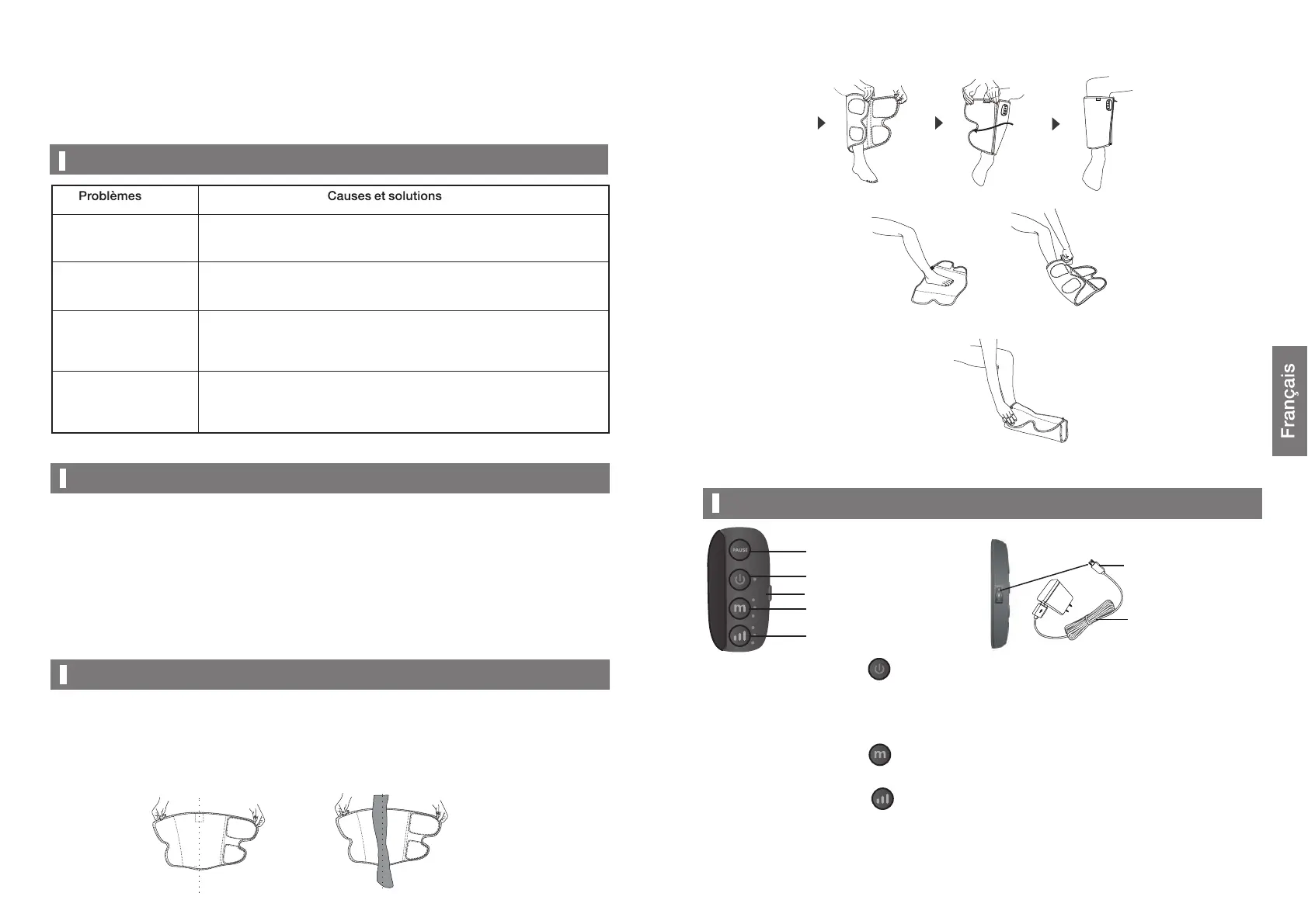 Afin d'obtenir un meilleur massage, veuillez porter correctement les manches.