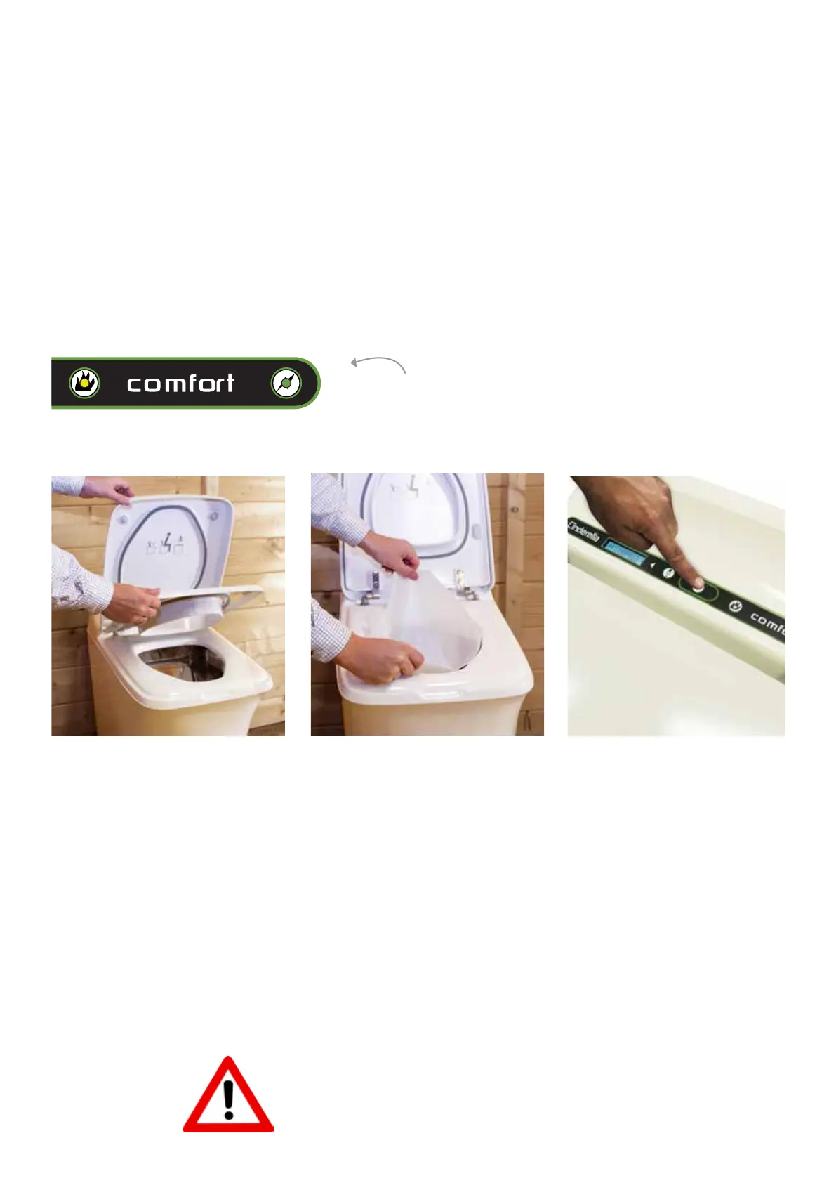 2. Toalettlocket ska alltid vara nedfällt när toaletten inte används. Förbränningen kan inte starta förrän