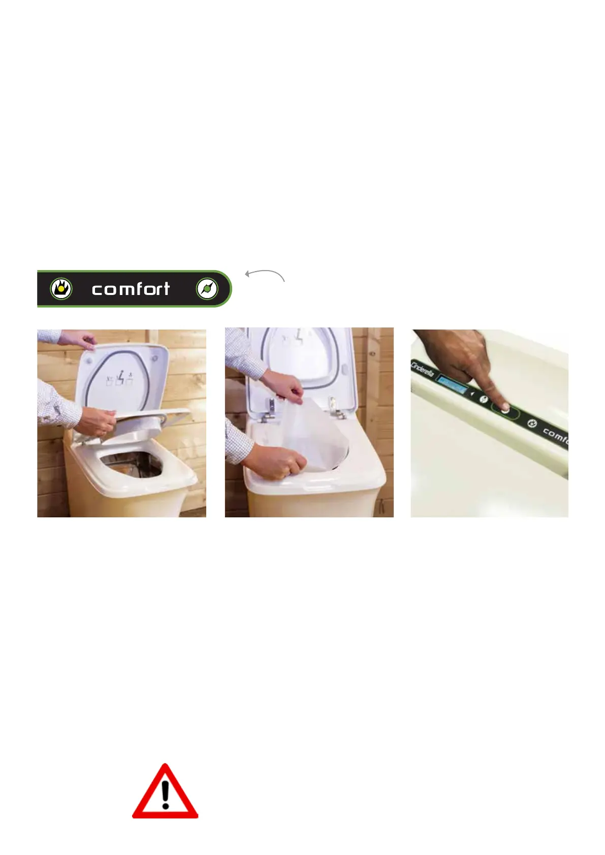 2. Toalettlokket skal alltid være nede når toalettet ikke benyttes. Forbrenning vil ikke kunne starte før lokket er nede.