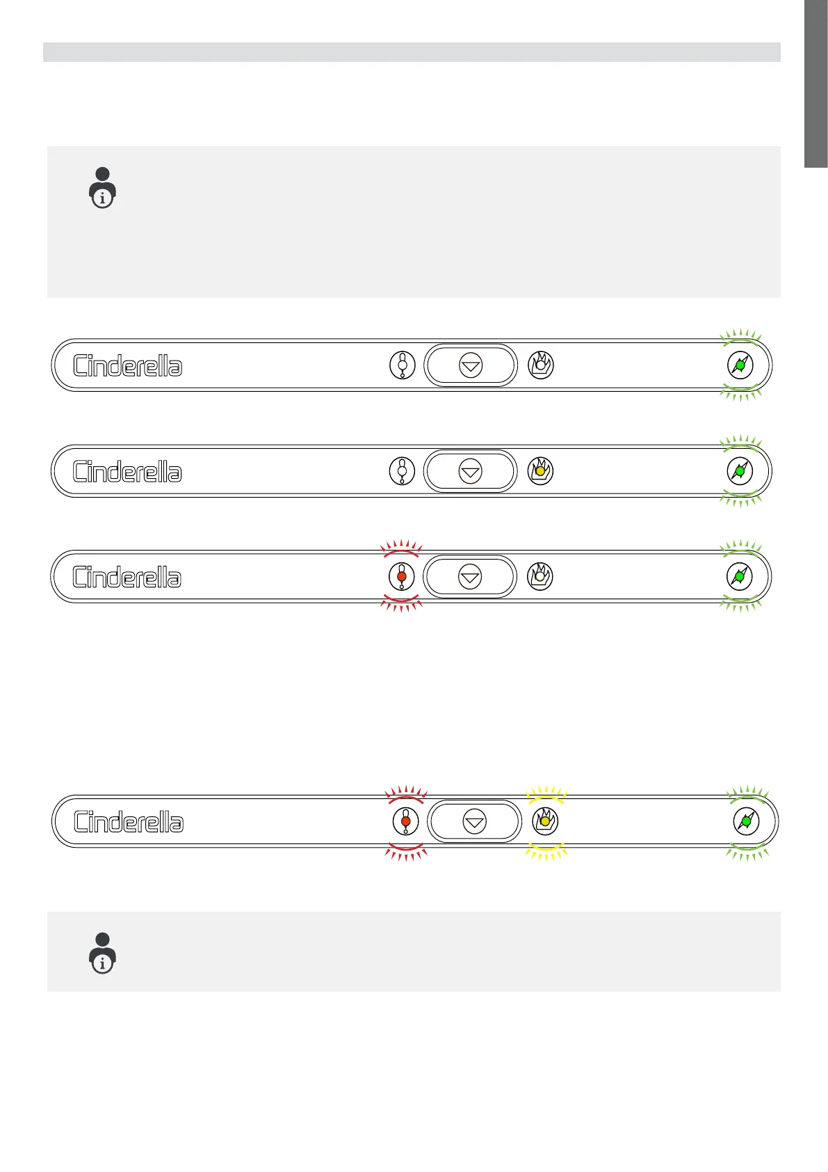 Your Cinderella Classic will indicate when the ash container is full and must be emptied. The yellow and red LED
