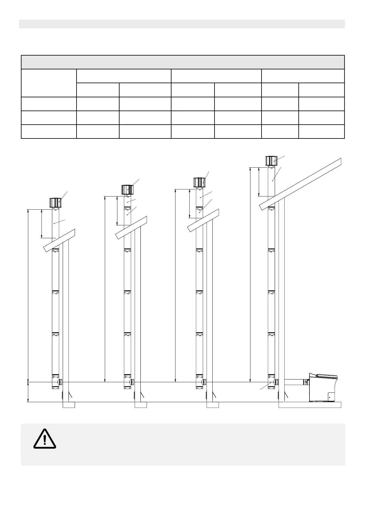 For specications on vertical ue pipe installation, see illustration as presented below. The table is used to