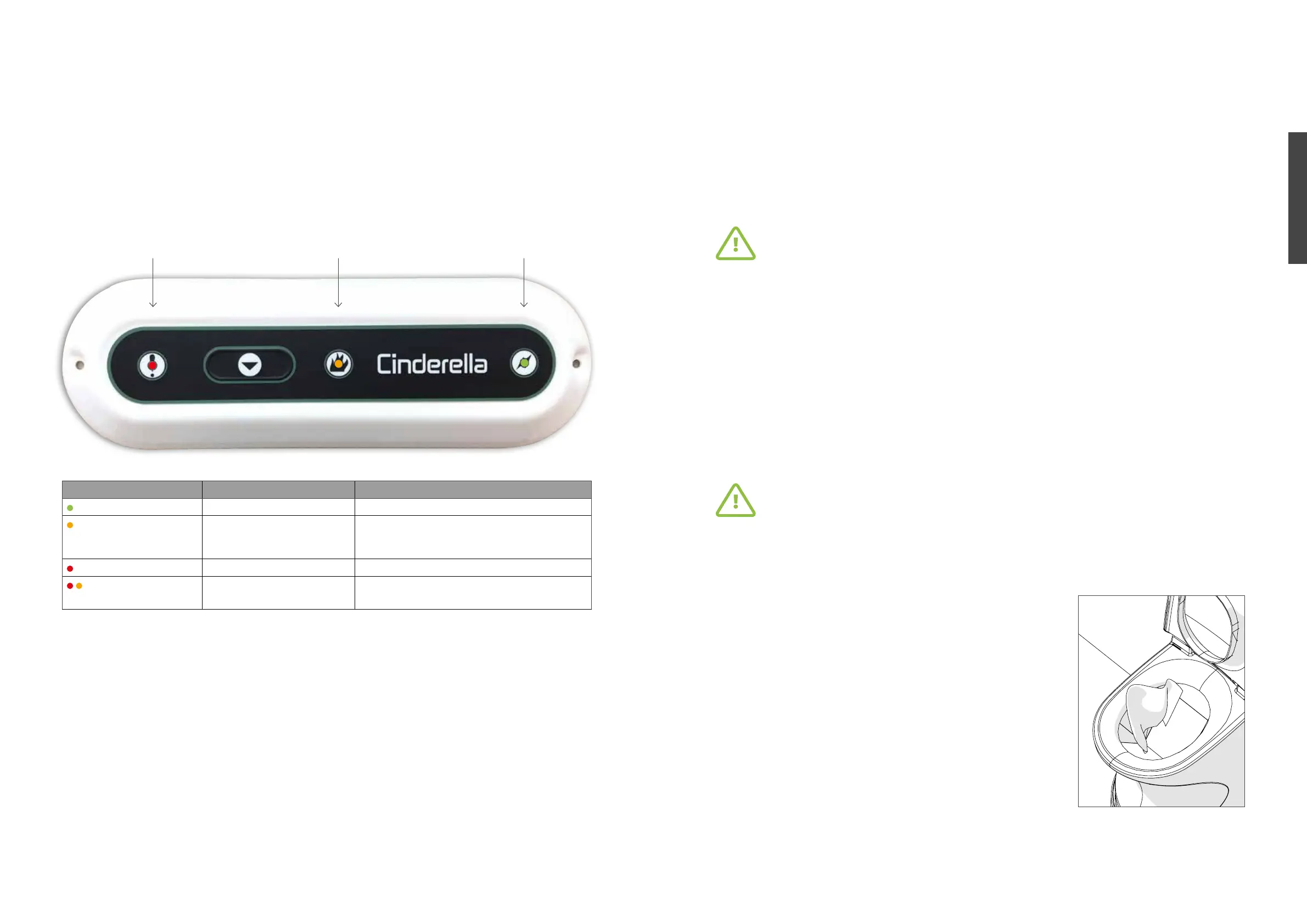 Grønn lampe Lyser kontinuerlig Toalettet er koblet til 12 V strømforsyning