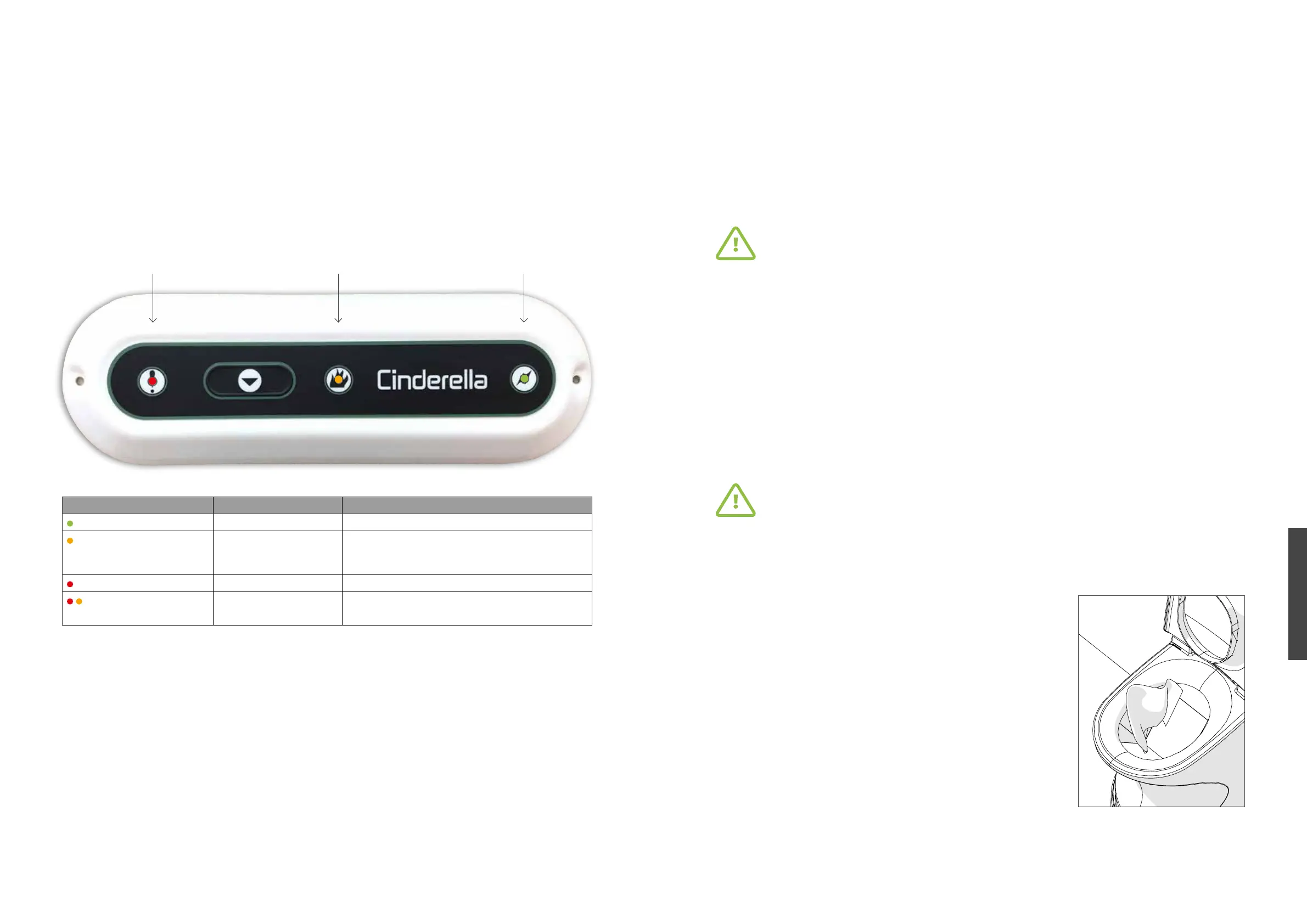 • Der Aschebehälter darf nur geleert und gereinigt werden, wenn die Toilette abgekühlt ist.