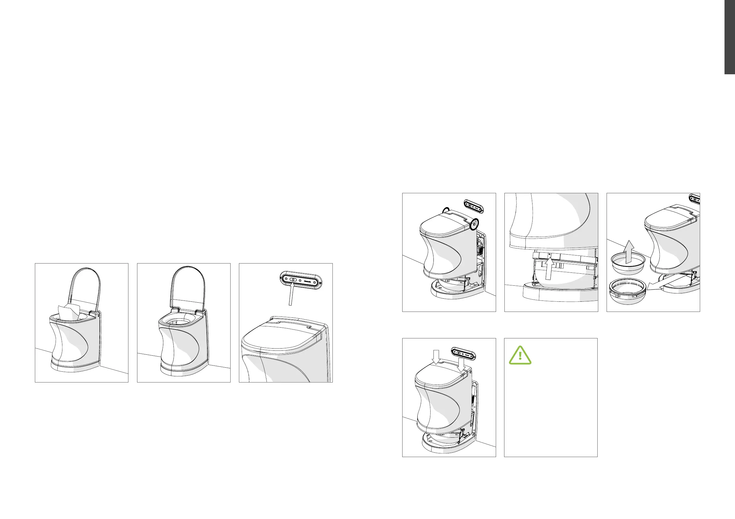 1. Wait until the toilet has cooled down and the fan has stopped. Do not turn the 12V power o.