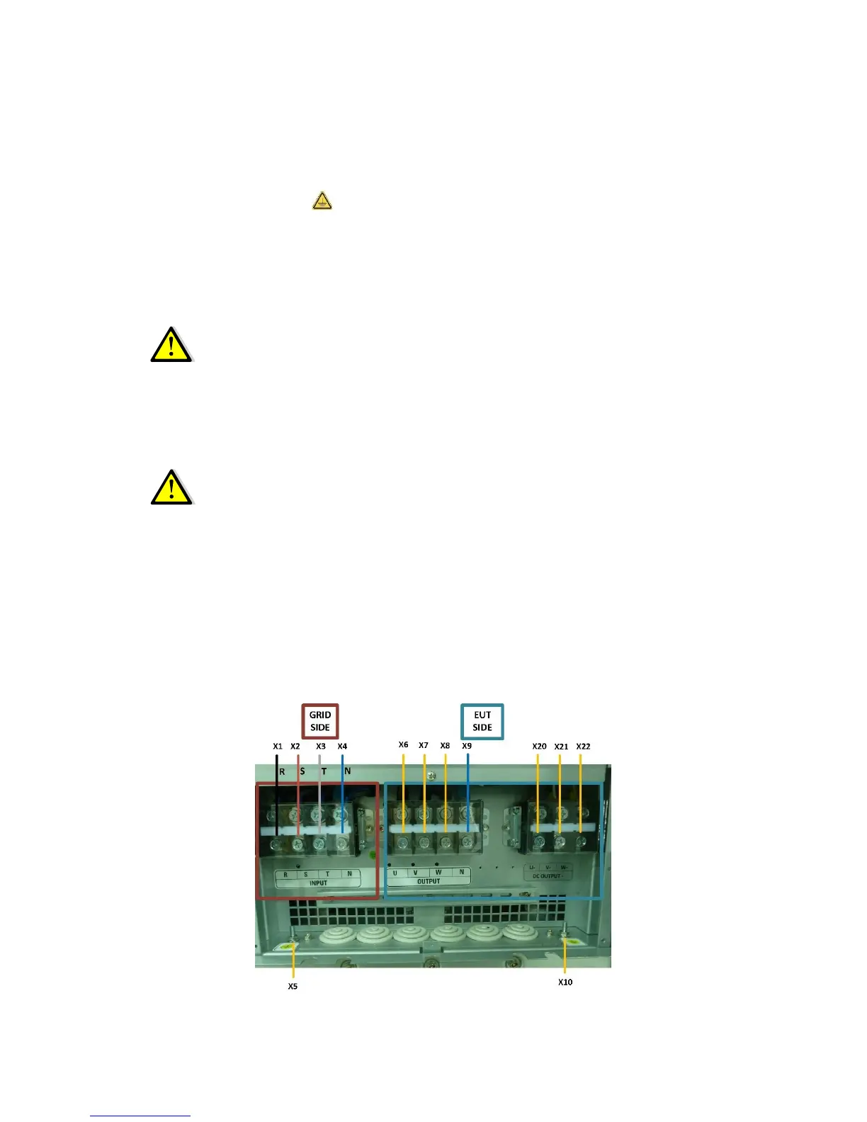 earth wire (connect earth ). Connect the protection earth wire to the terminal (X5) before