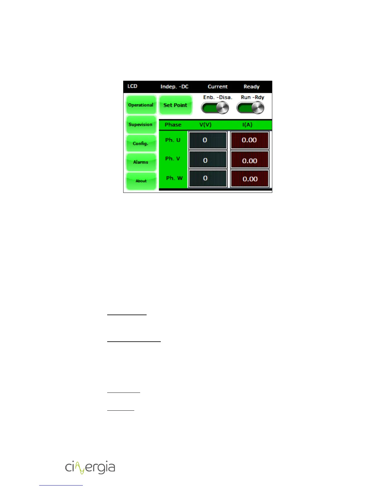 The main purpose of the Operational menu is allowing the user to introduce set-points as well