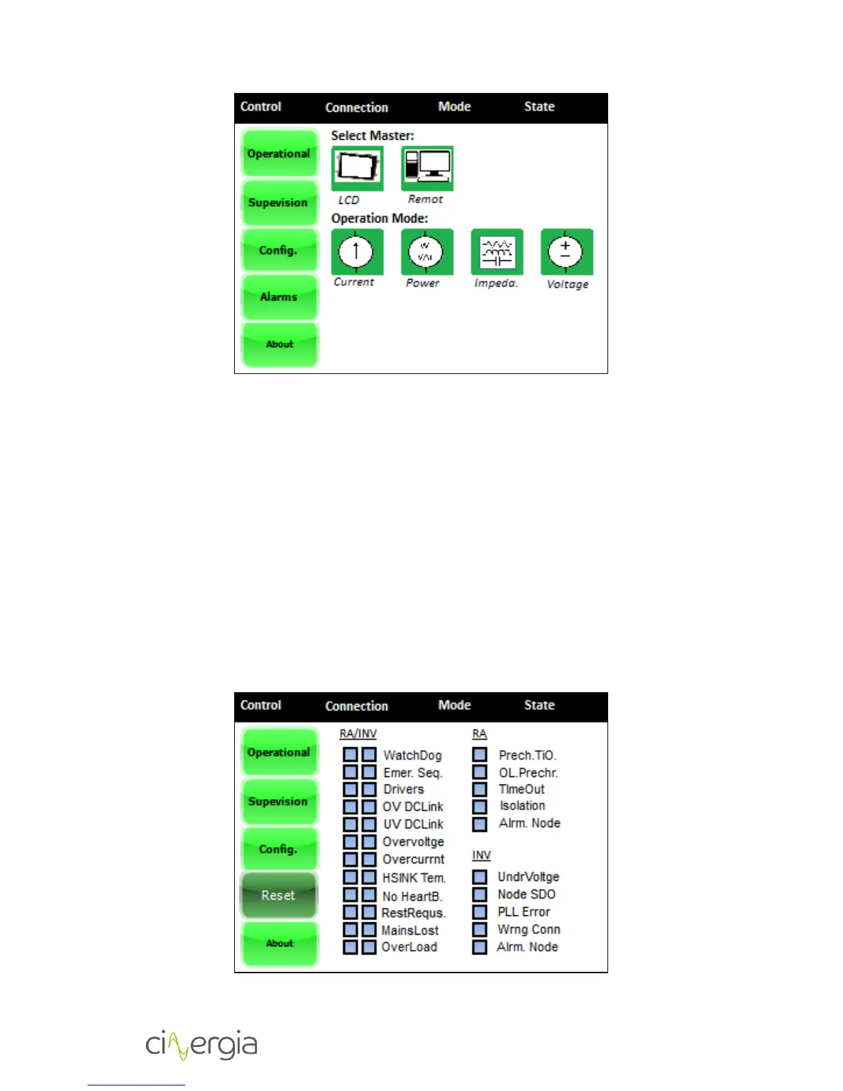 Operation Mode. The user can choose between the Current mode, Power Mode and