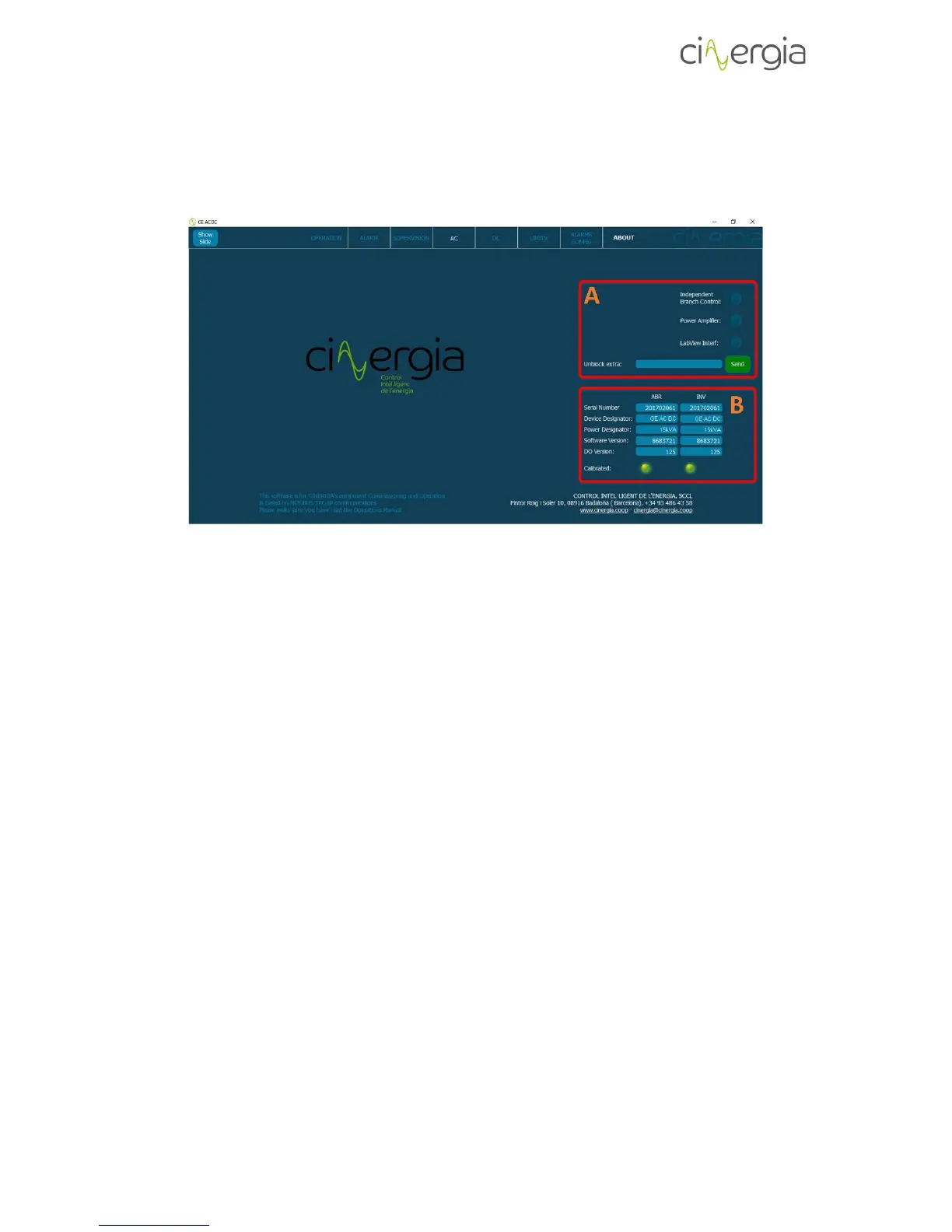 - A: Extras of the converter. By entering the password delivered by Cinergia, it is possible