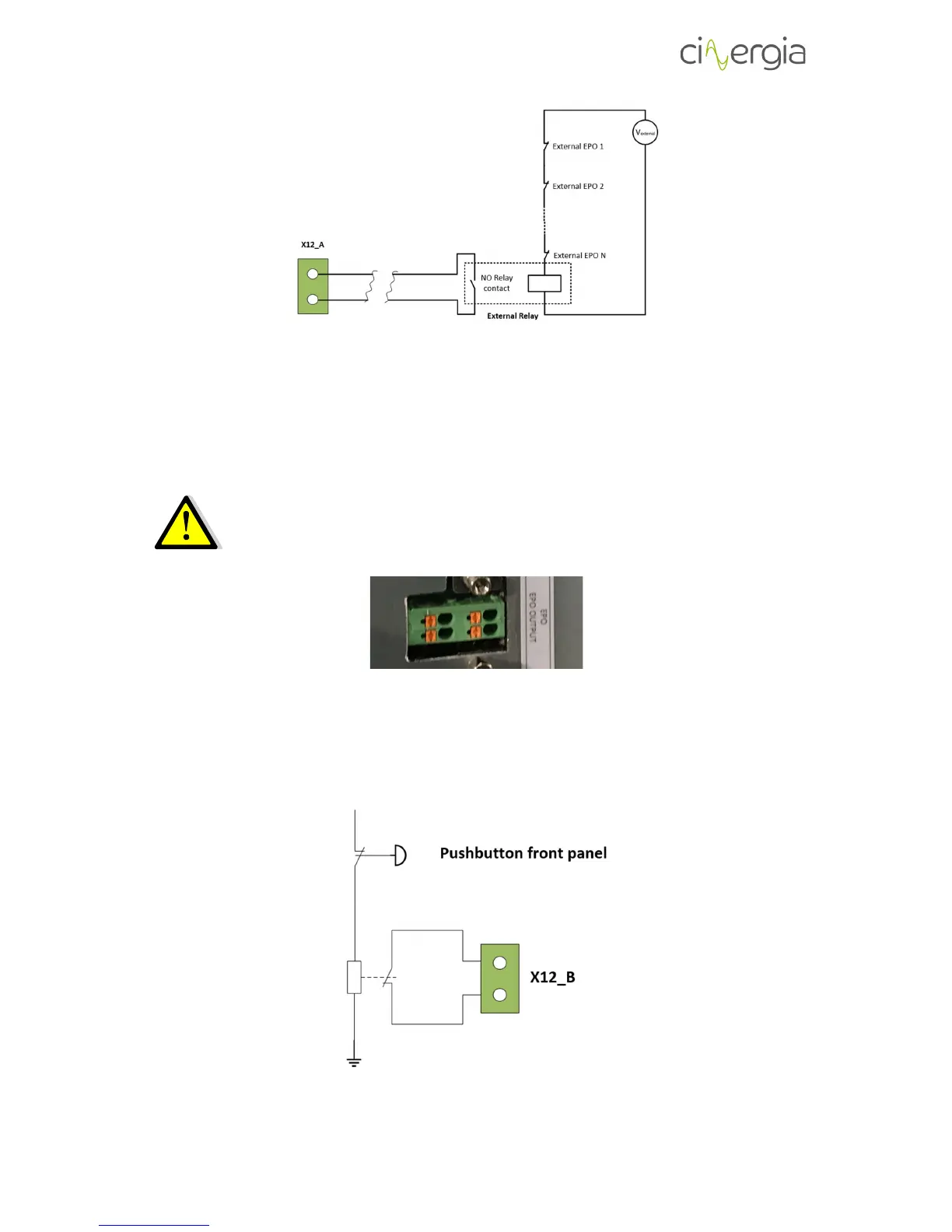 connected to X12 (J15) EPO terminals. The relay contact allows 230VAC/24VDC