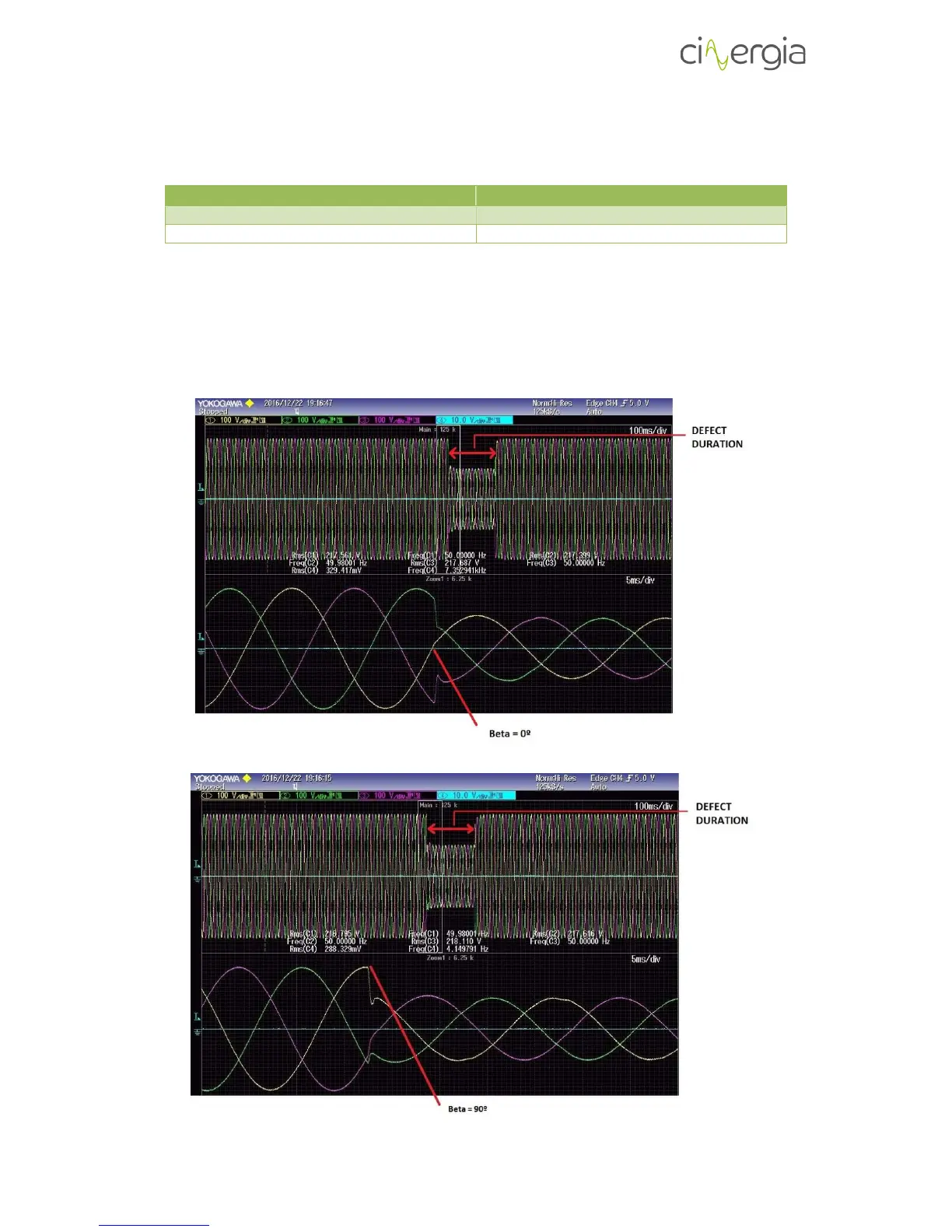 following images show an example of a voltage dip with different fault delay (β). The first one has