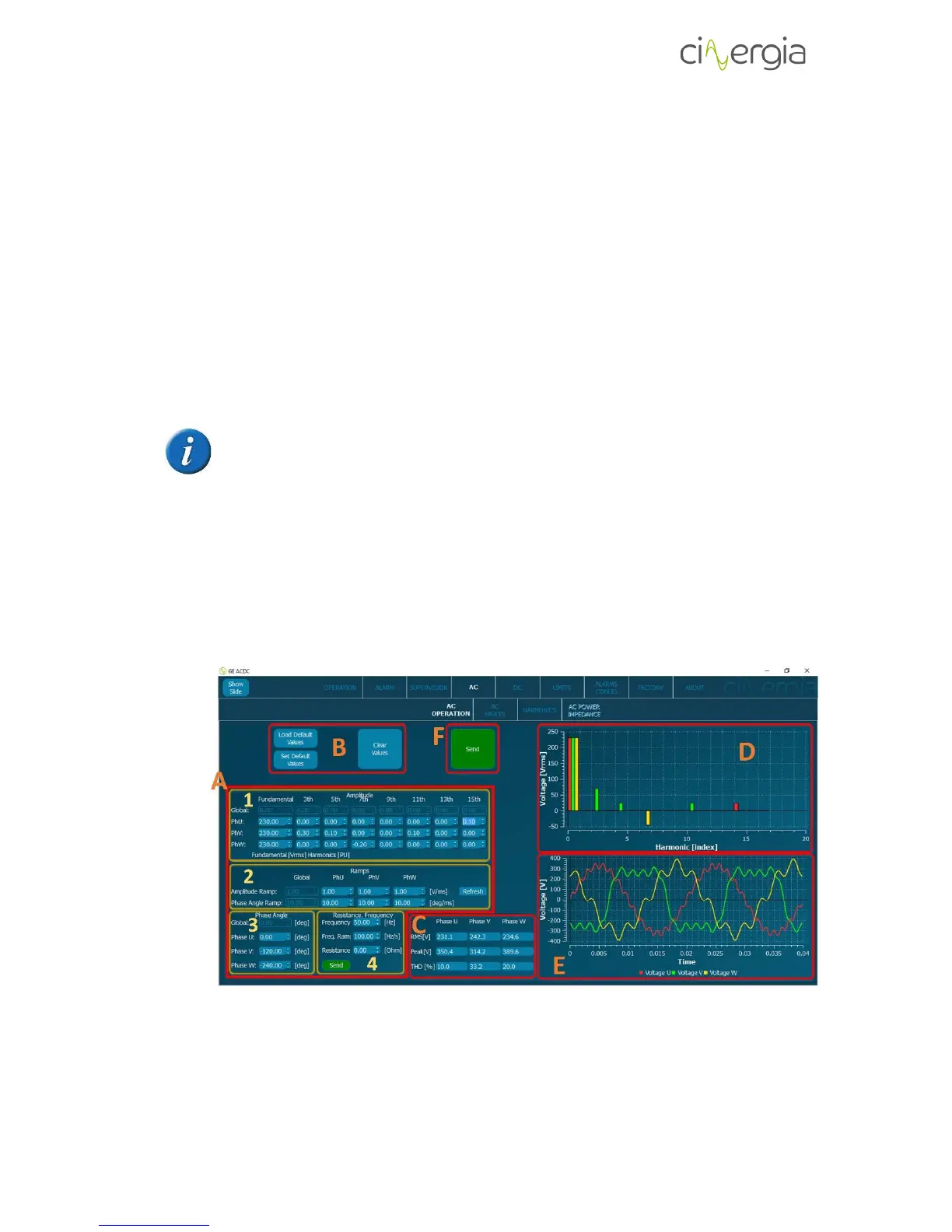 This subtab allows the user to send all the AC parameters to control the Cinergia converter in