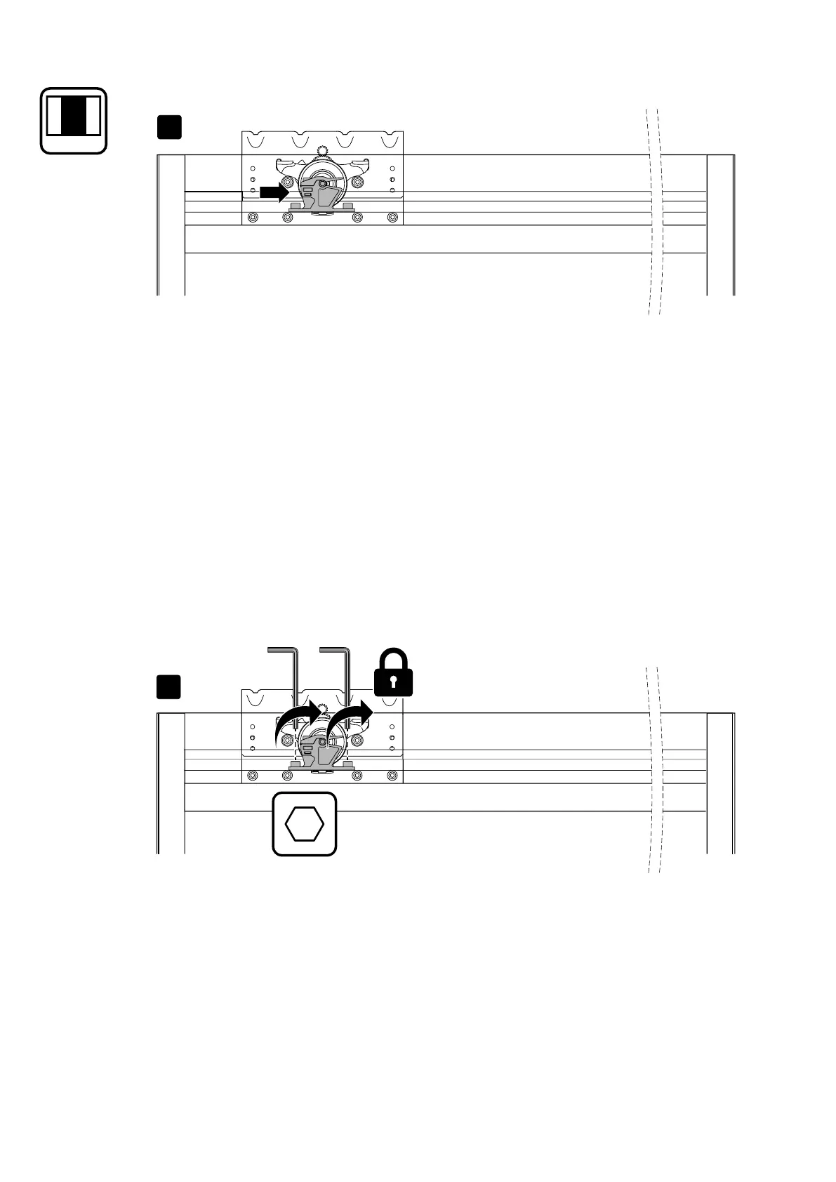 Fix the upper lock. Fixer l’arrêt supérieur. Den oberen Anschlag