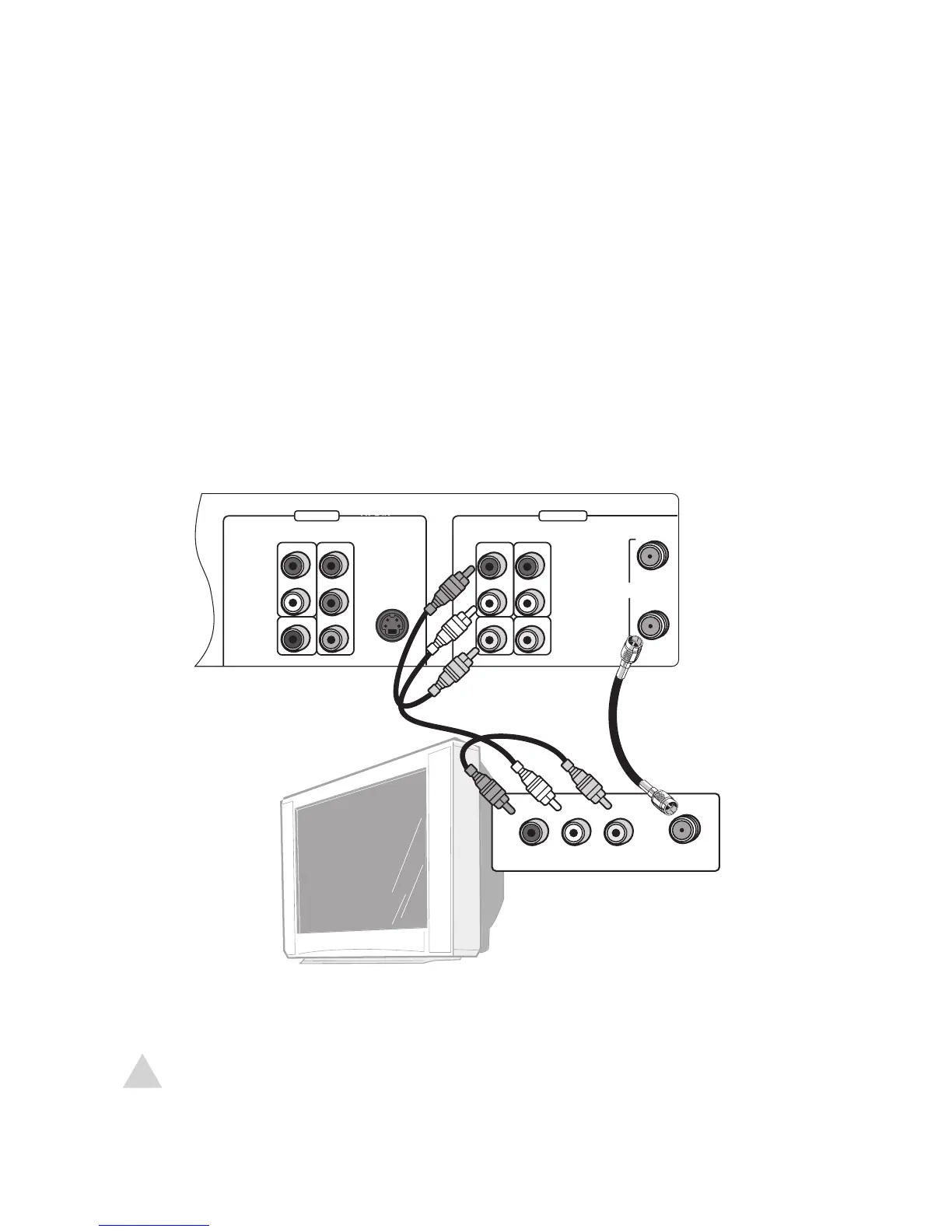 Connect the supplied audio/video cables from the DVD+VCR to your TV as shown.
