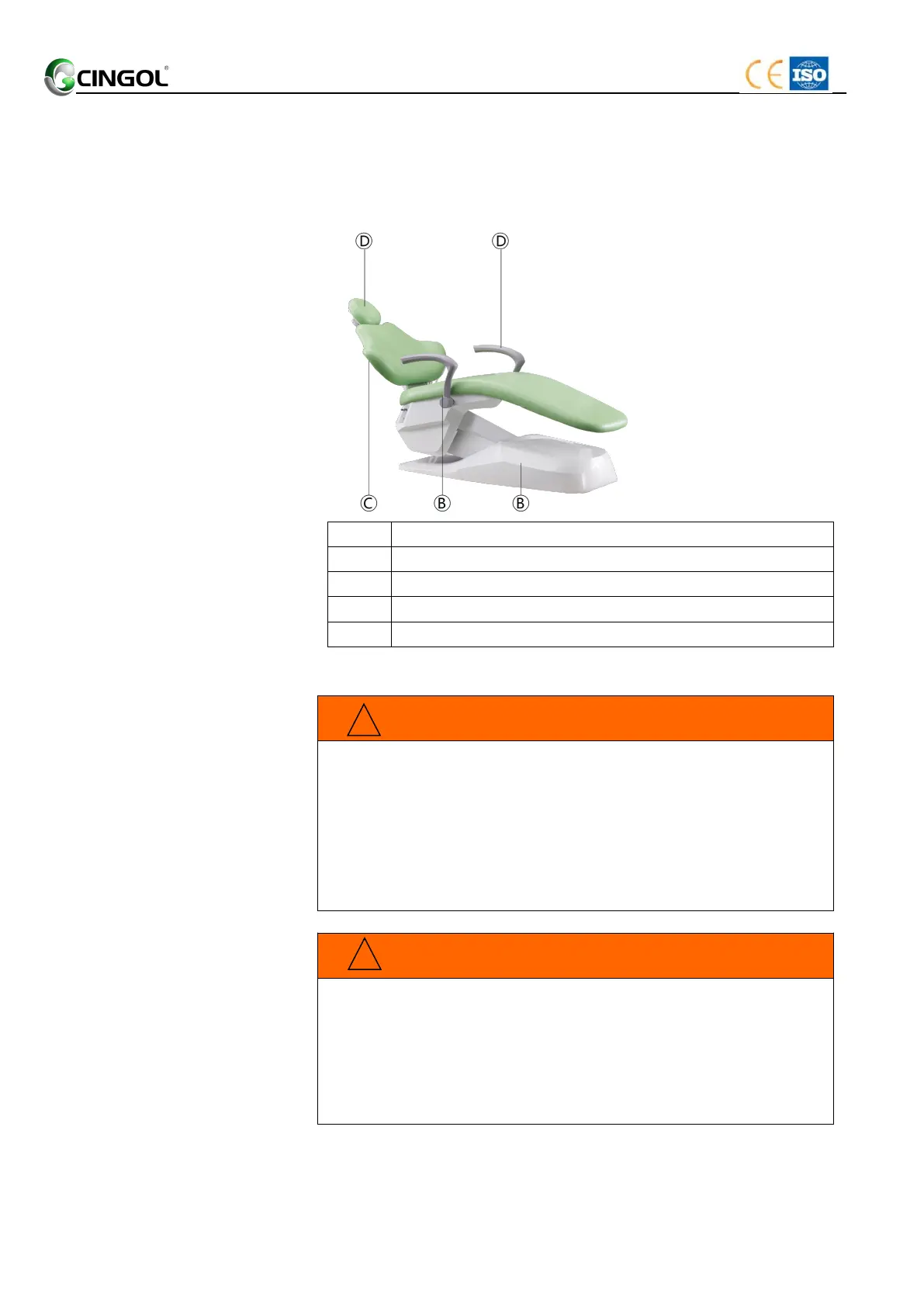 and the chair base. Please make sure that the patient’s arms and