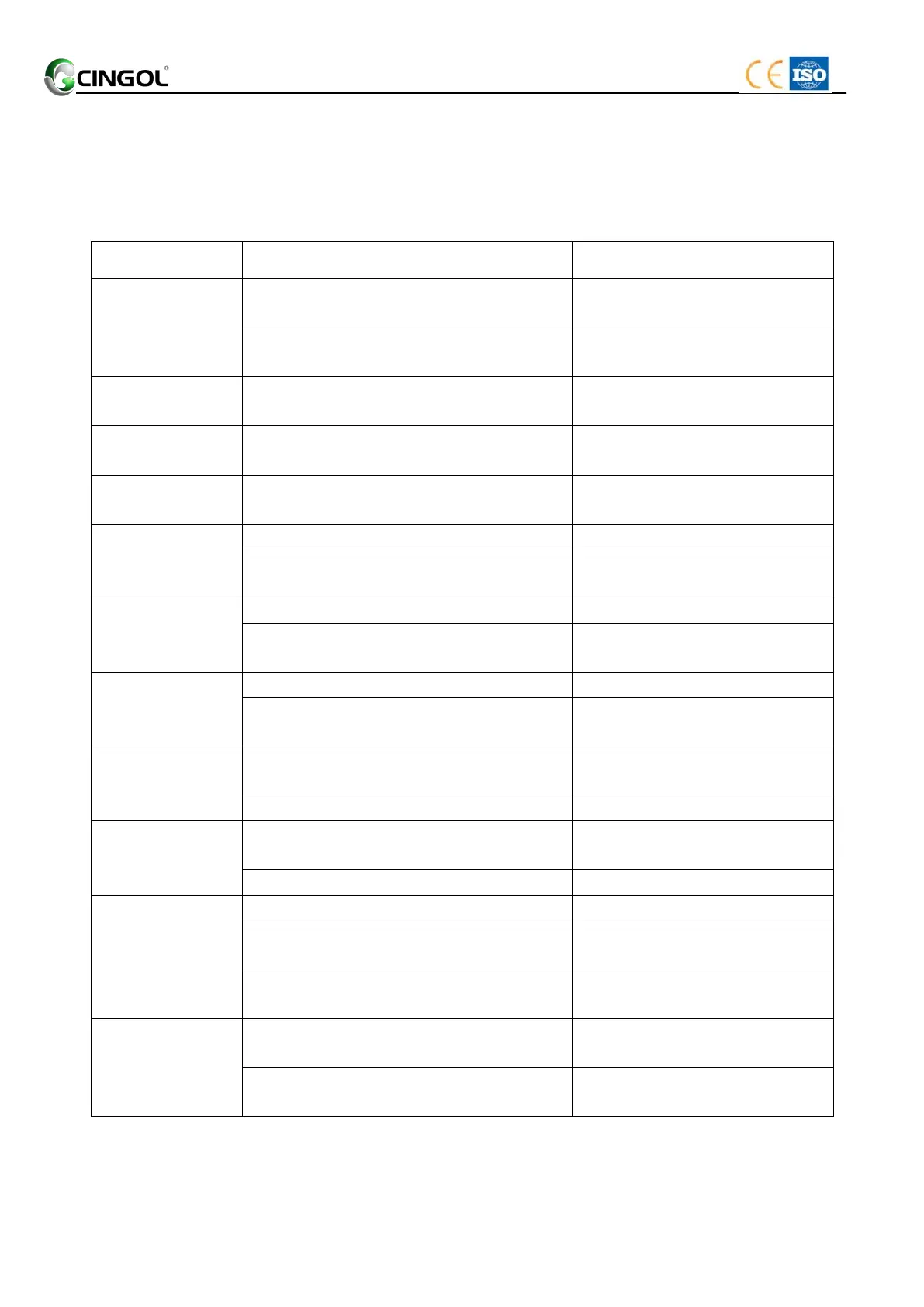 Some common fault is following table: