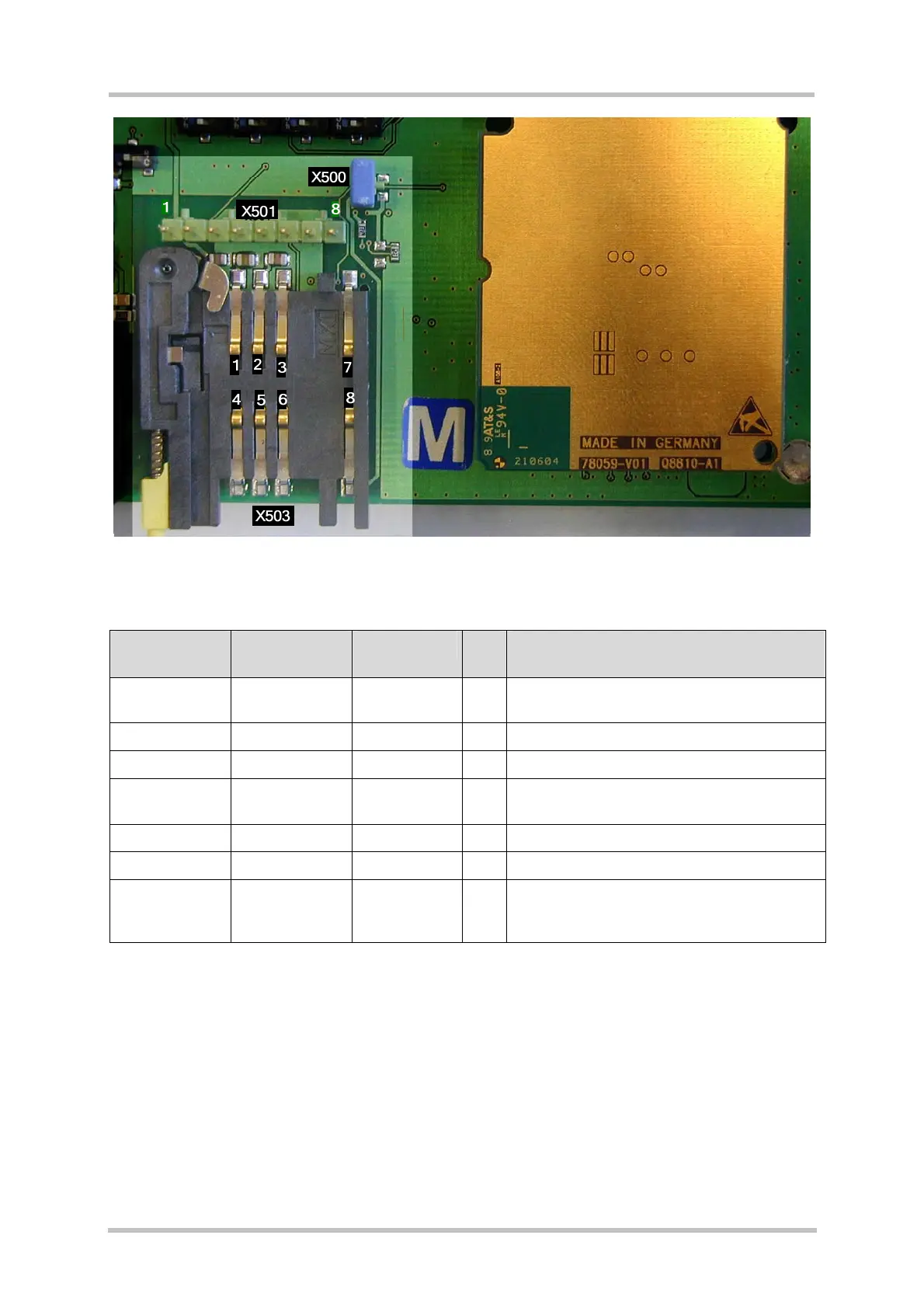 Table 10: Pin assignment – SIM card holder X503 and test pins X501
