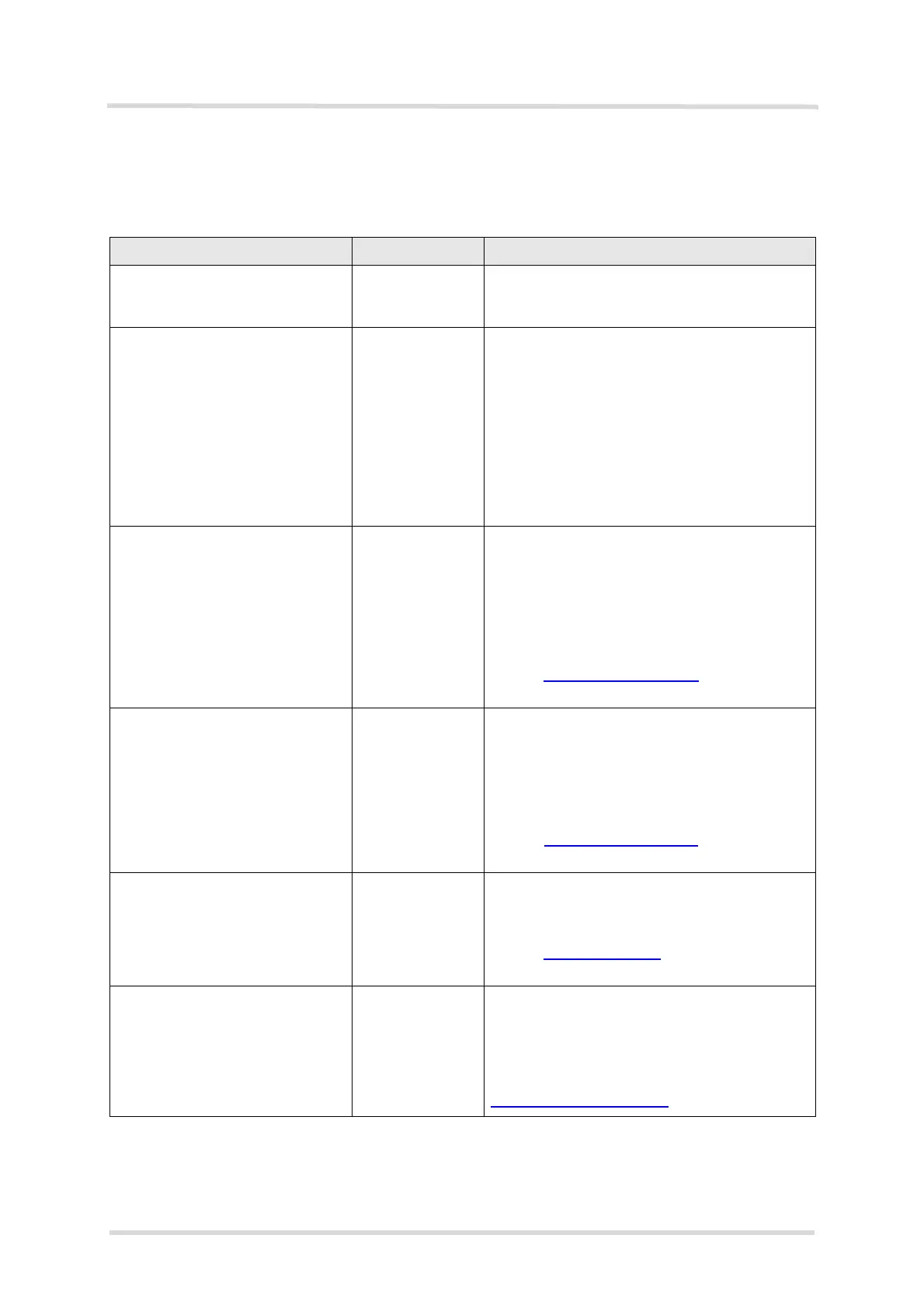 Table 24: List of parts and accessories