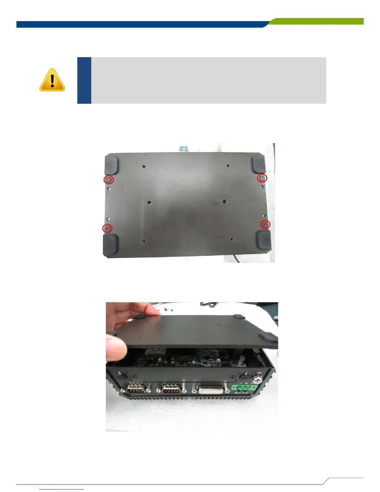1. Turn over the unit to have the bottom side face up, loosen the 4 screws of bottom