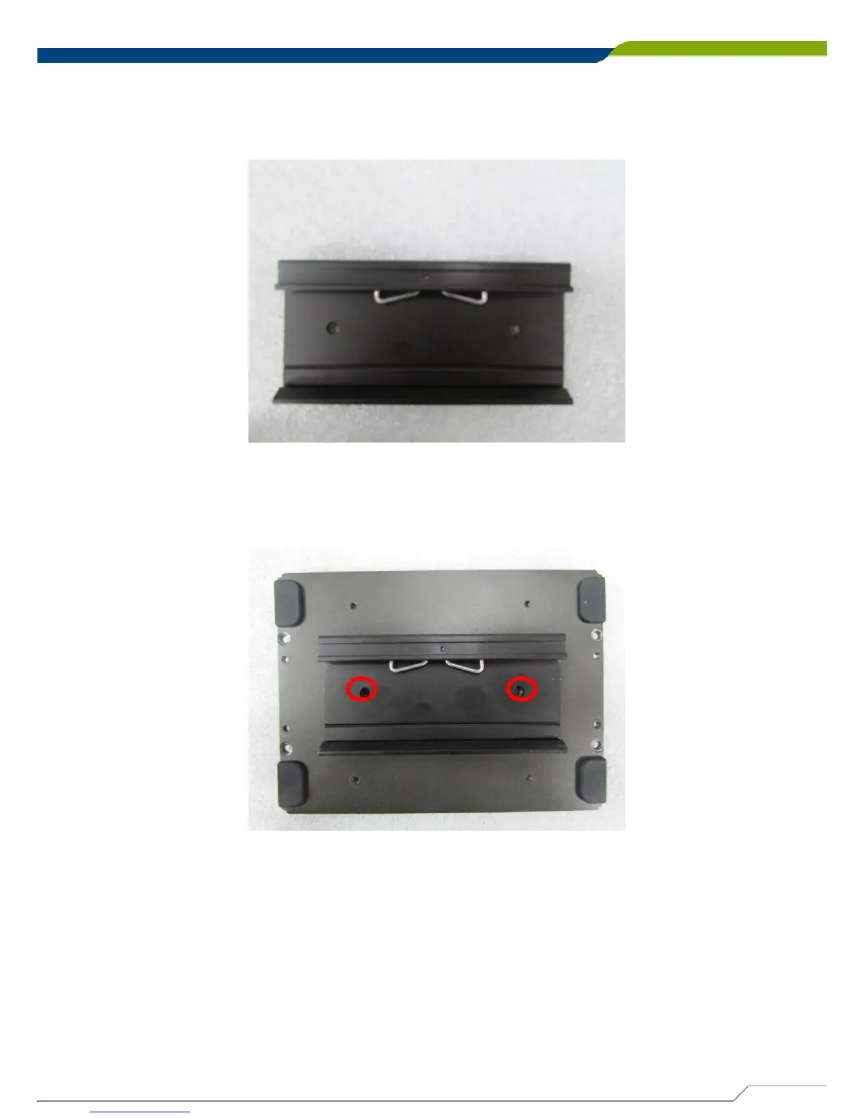 1. The mounting holes are at the bottom of system. Fasten the 2 screws to fix the DIN-