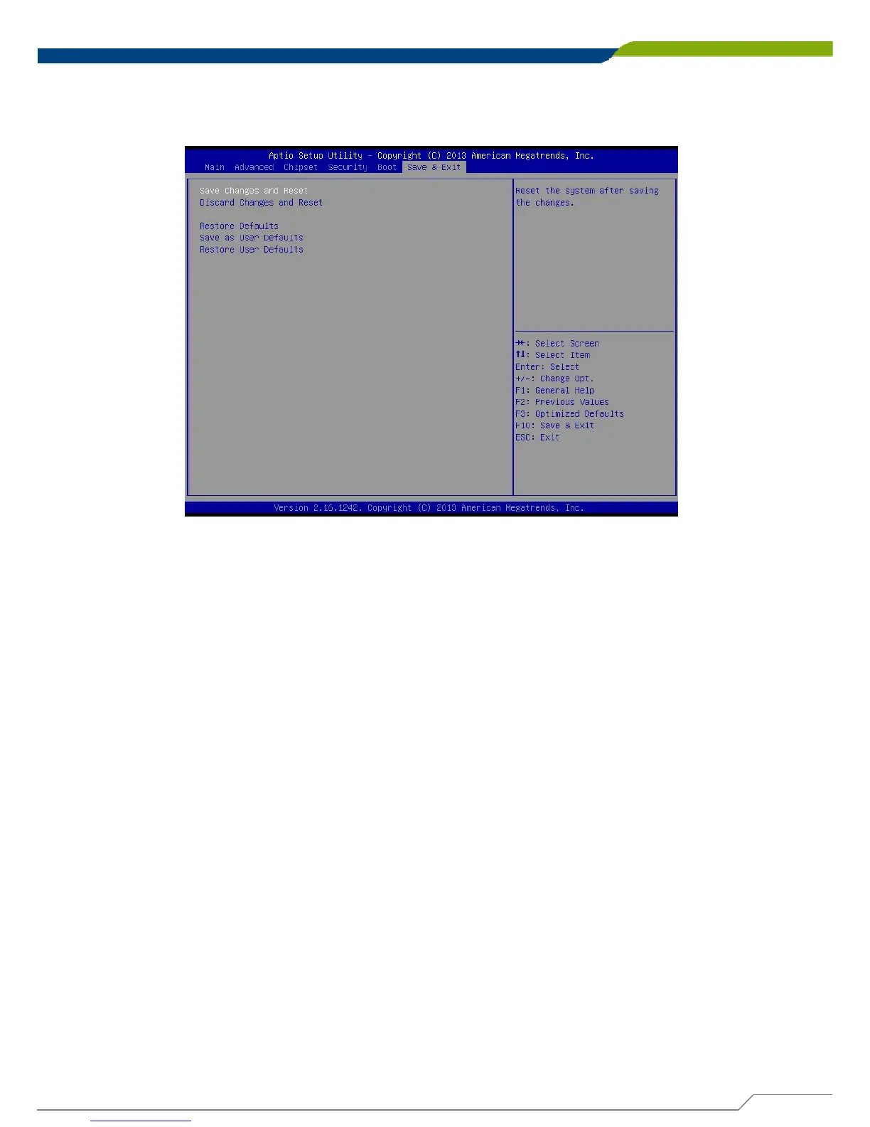 This item allows user to reset system setup after saving changes.