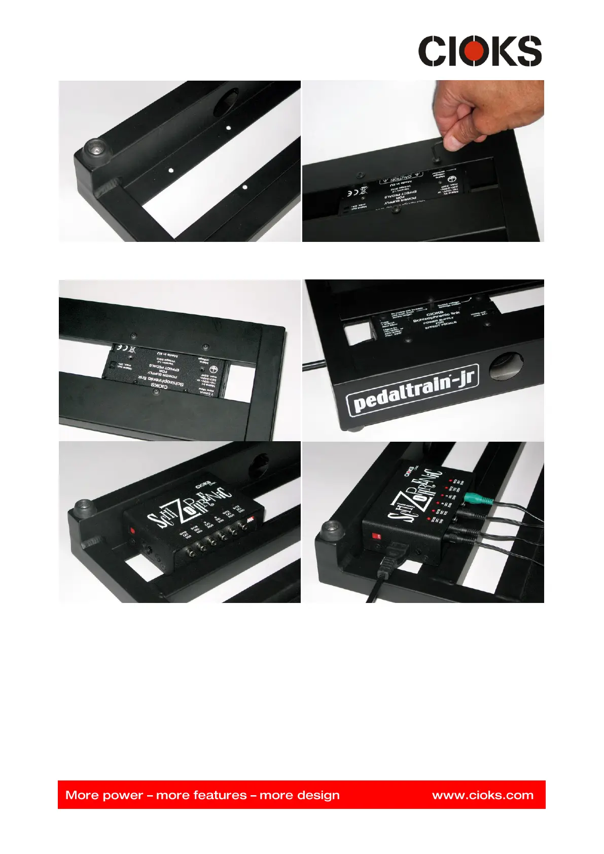 CIOKS LINK range power supplies underneath or on top of a Pedaltrain board.