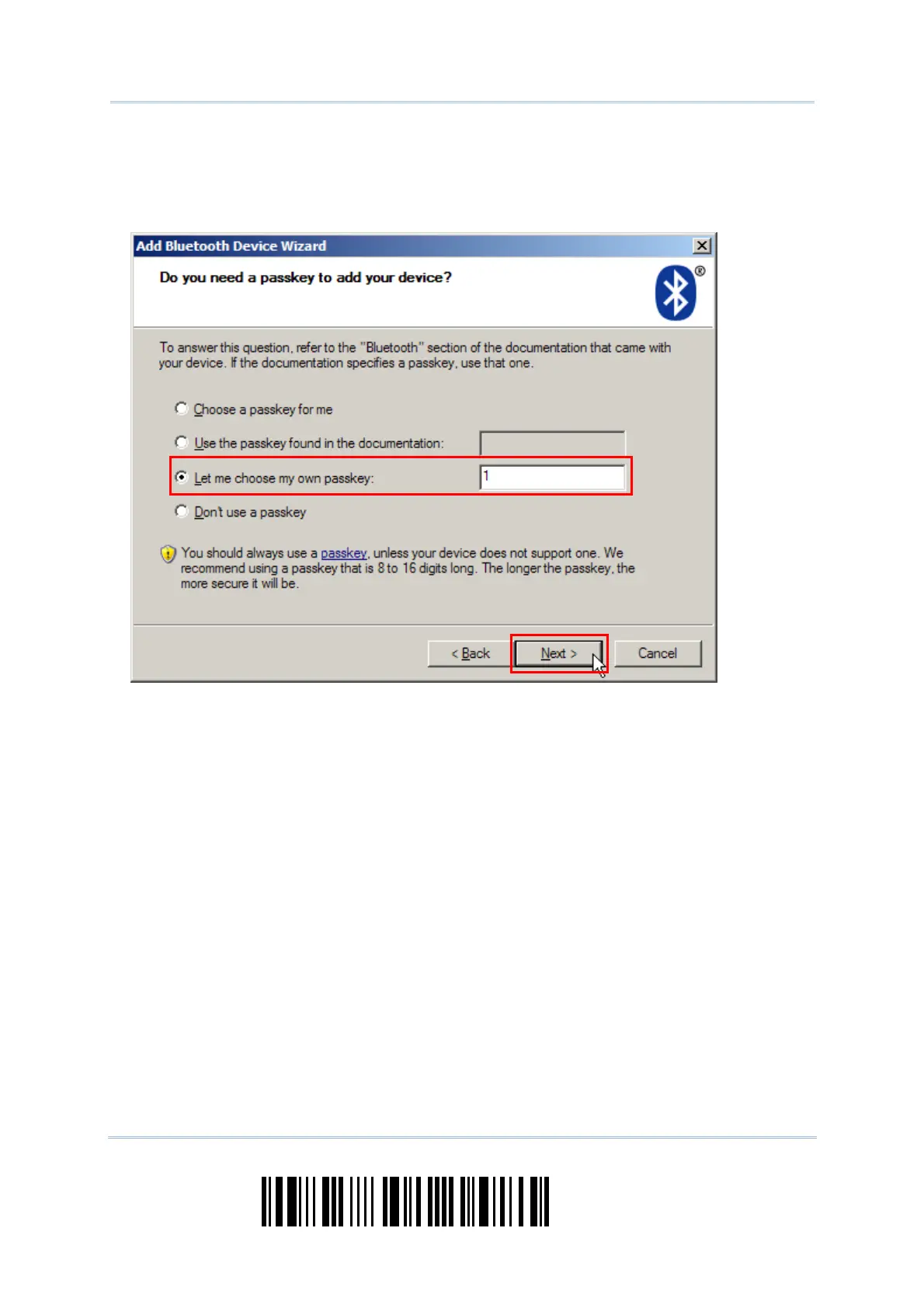8. Enter the passkey for authentication, which must be exactly the same as configured for the