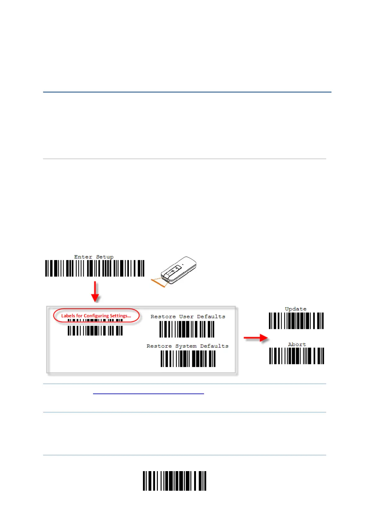 4) Read the “Update” or “Abort” barcode. It will respond with six beeps and its LED indicator will