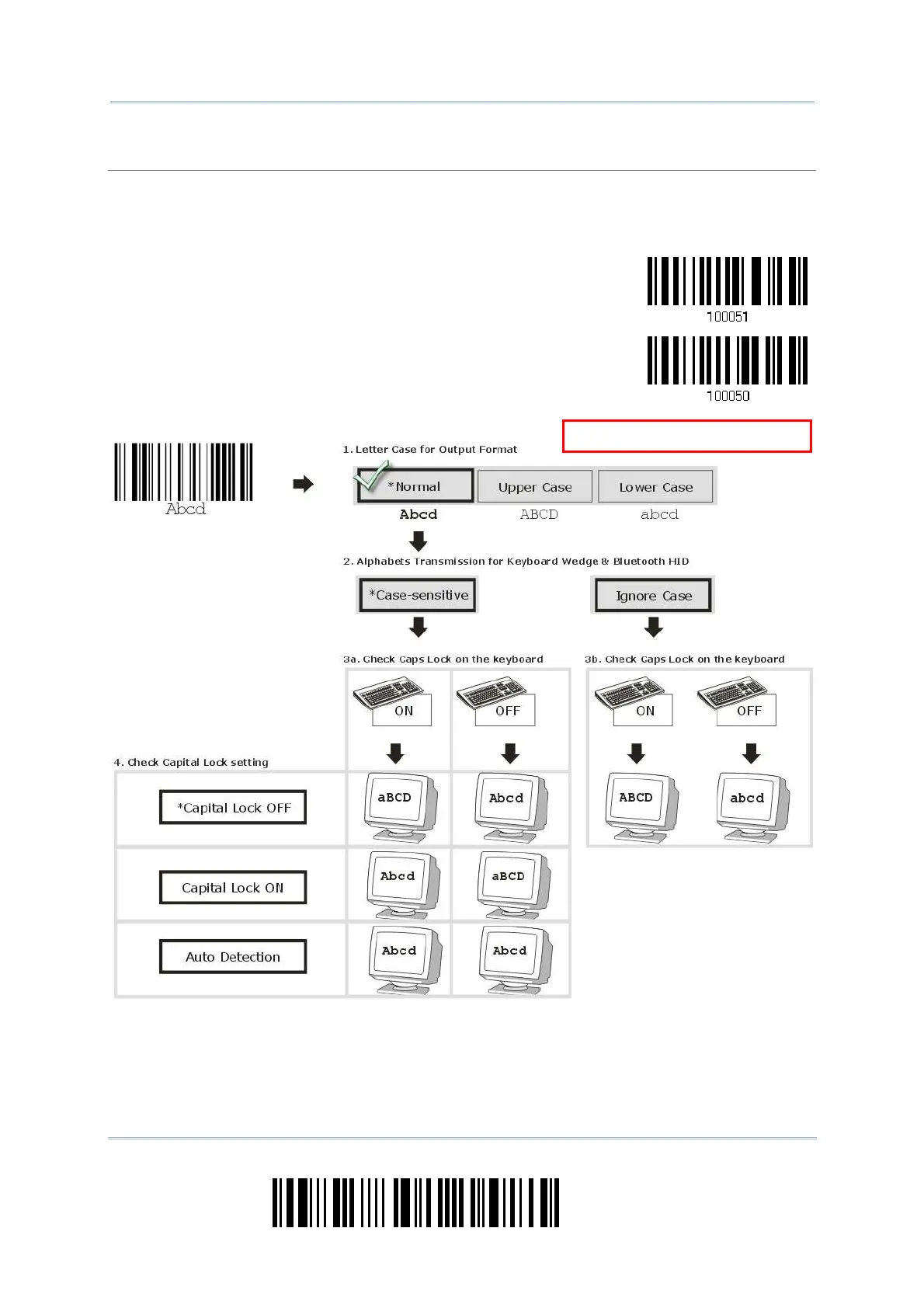 Capit al Lock set ting. Select [ I gnor e Case] t o hav e alphabet transm it t ed according t o the st at us of