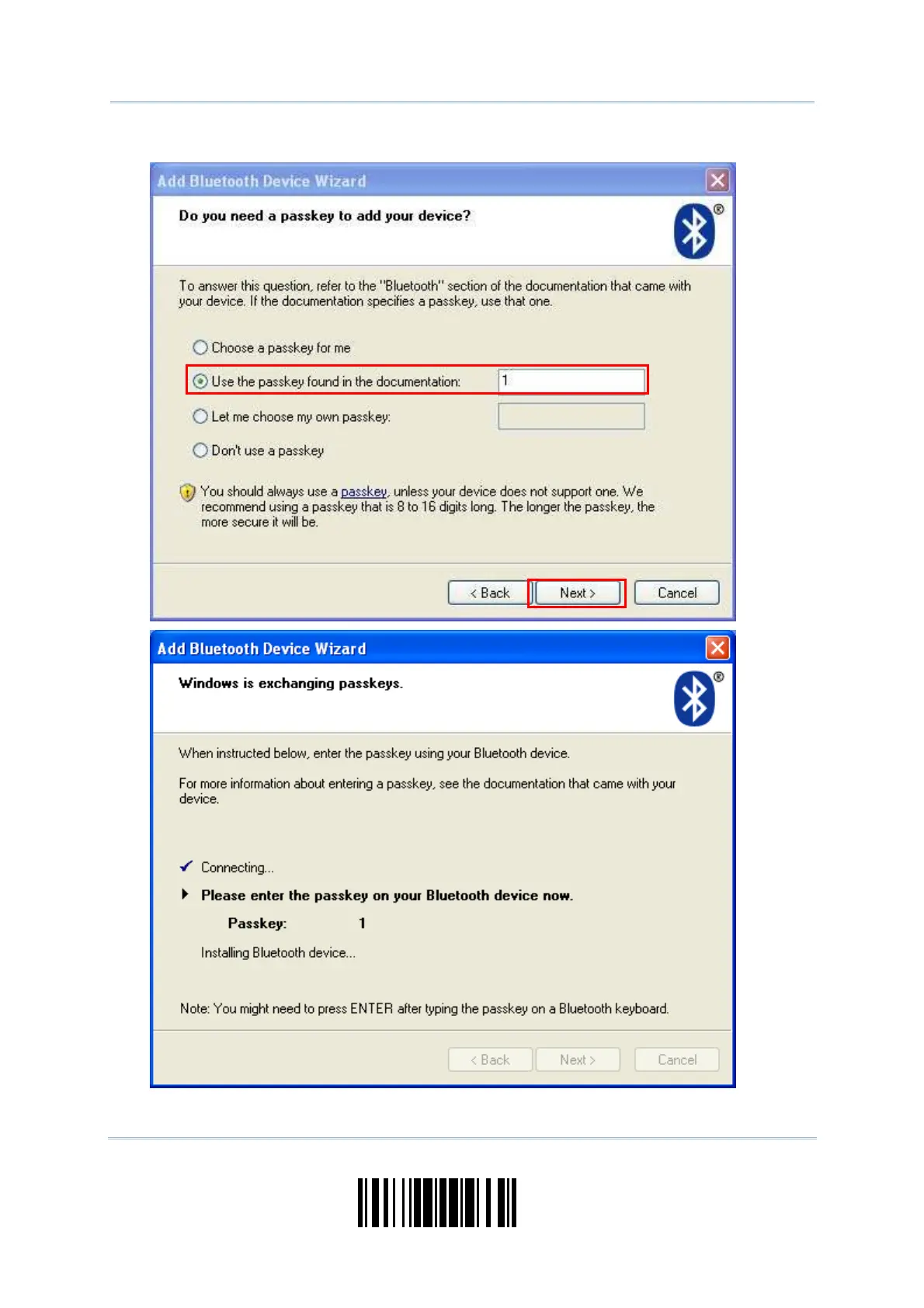 9) Click [ Next] . Wait for a few seconds for Windows to exchange passkeys.