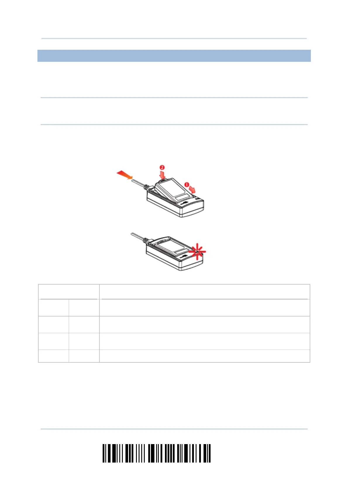 The battery charger is provided for charging t he battery outside of t he scanner. You m ay