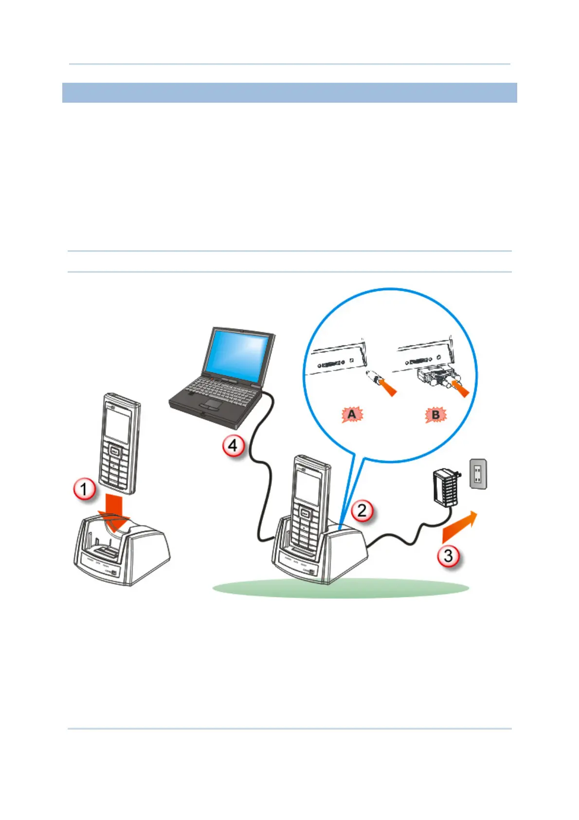 2) Connect the power supply cord to the power receptacle on the cradle (A) or join it to