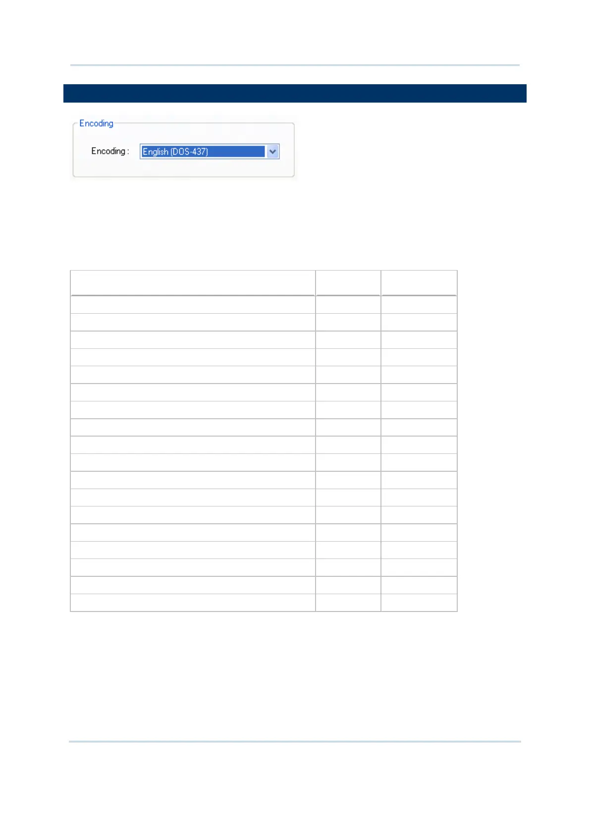 Users can click the Encoding drop-down menu to select a font file language. The table