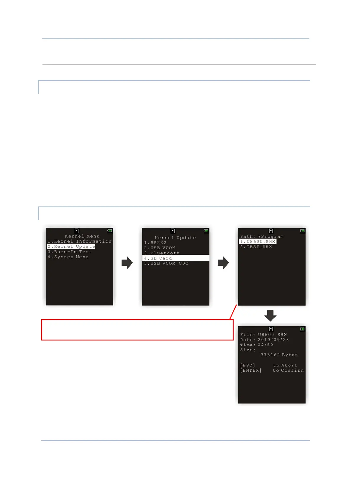 1) If you have copied the desired program file(s) to your SD card, go to Kernel Menu |