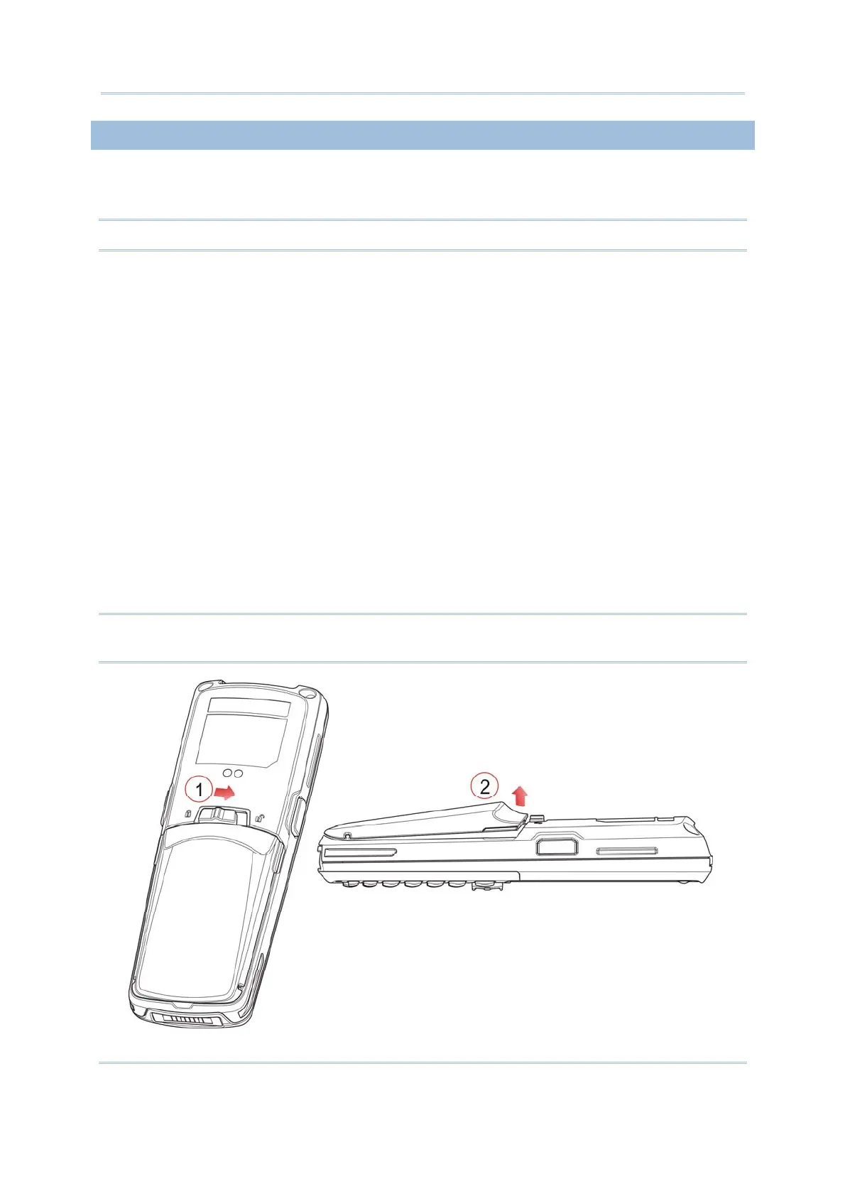 1) Hold the mobile computer still and slide the release latch to the right to unlock the