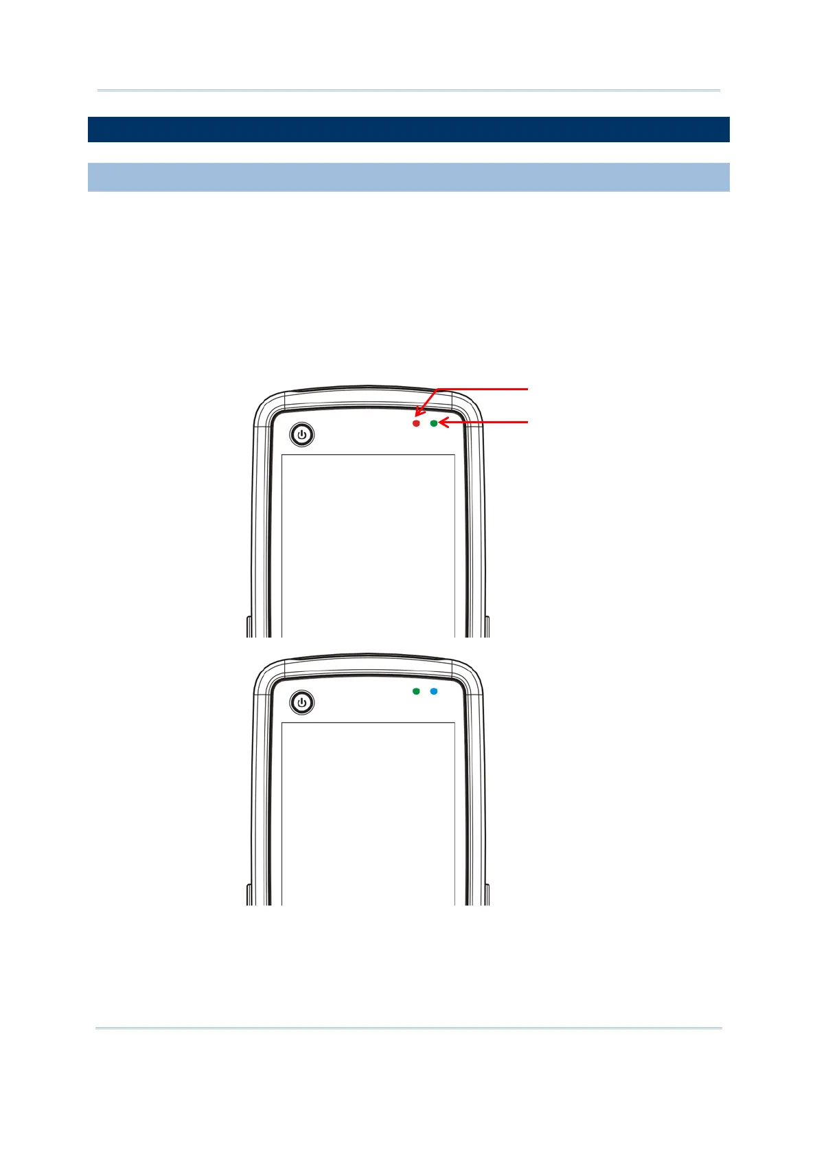 There are two dual-color LED indicators located at the upper-right of the screen. Both can